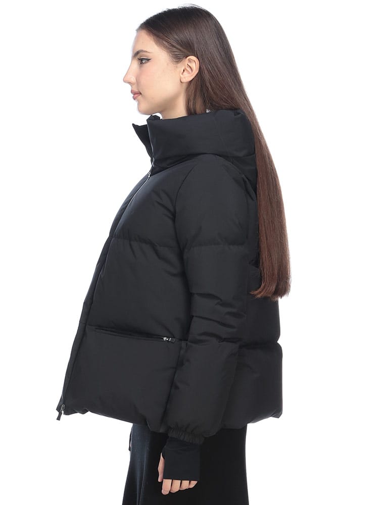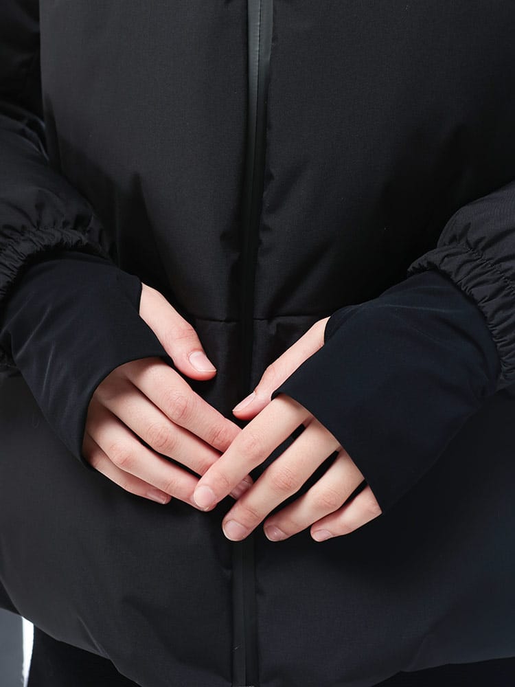 素材 :[表地]ポリエステル100% [裏地]ポリアミド100% [中綿]ダウン80% フェザー20% [一部]ポリアミド75% エラスタン25%