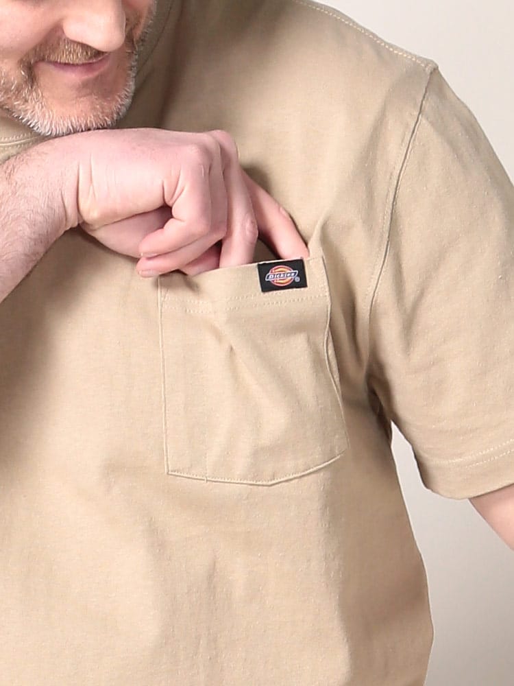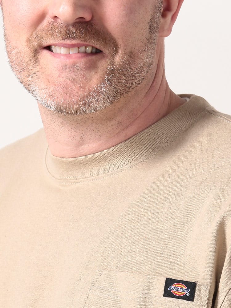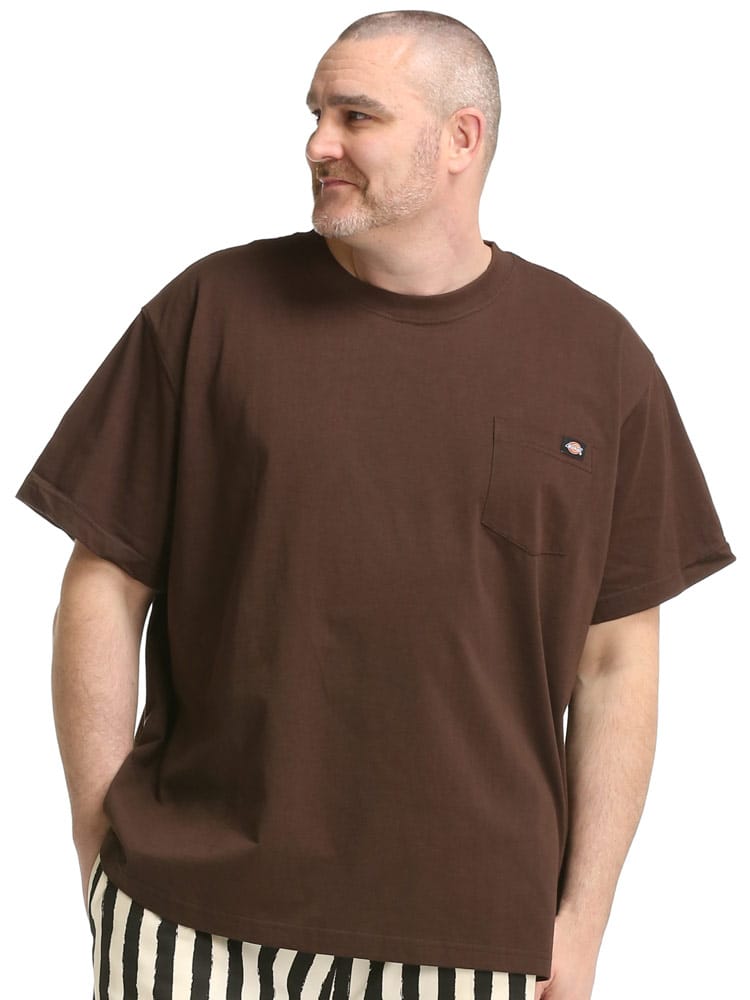 左胸のポケットとタグがワンポイントになったディッキーズのクルーネック半袖Tシャツ。素材に綿を100%使用しているので肌触りの良さに期待できます。シンプルで使いやすいからワードローブに1枚あればヘビロテしていただける一枚。