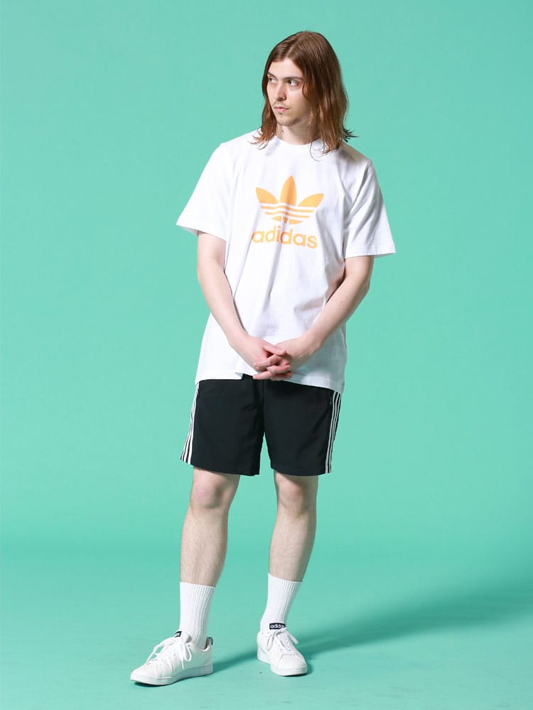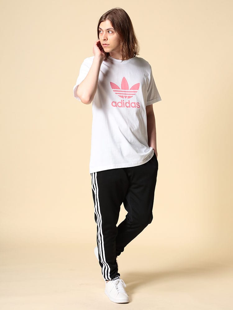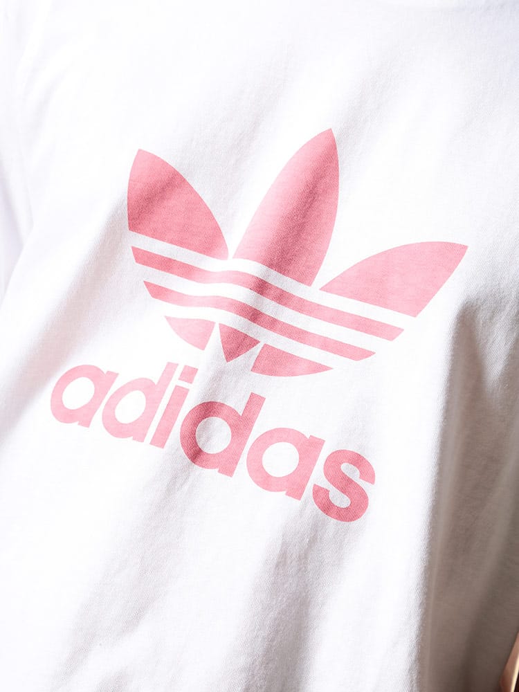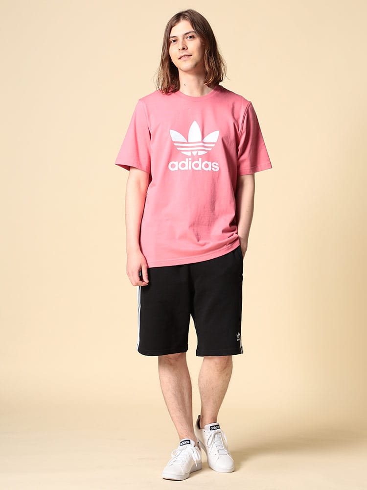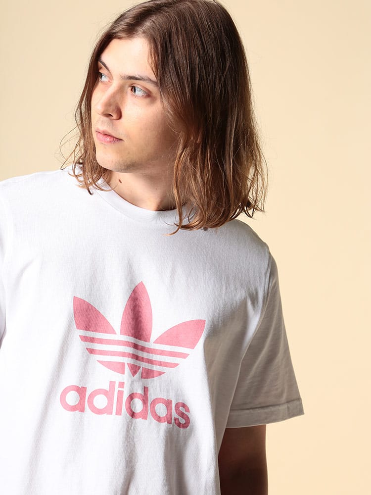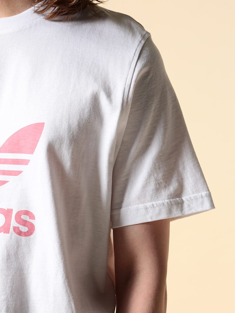 1972年のデビュー以来、誰もが知る大定番となったトレフォイル。そんな歴史あるアーカイブから刺激を受けデザインされたメンズのTシャツ。正面にコントラストを効かせ配した大きなトレフォイルがスポーティーな印象を演出する。コットンジャージー素材をもちいたリブネックの仕上げで、アーバンライフにマッチするスタイル。