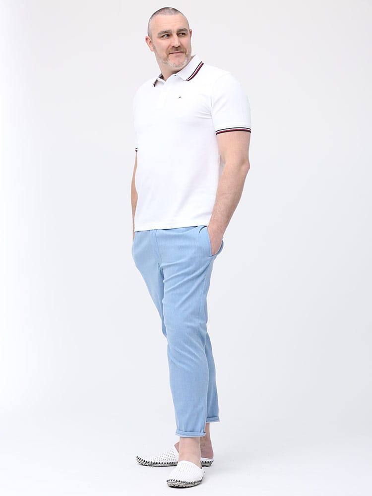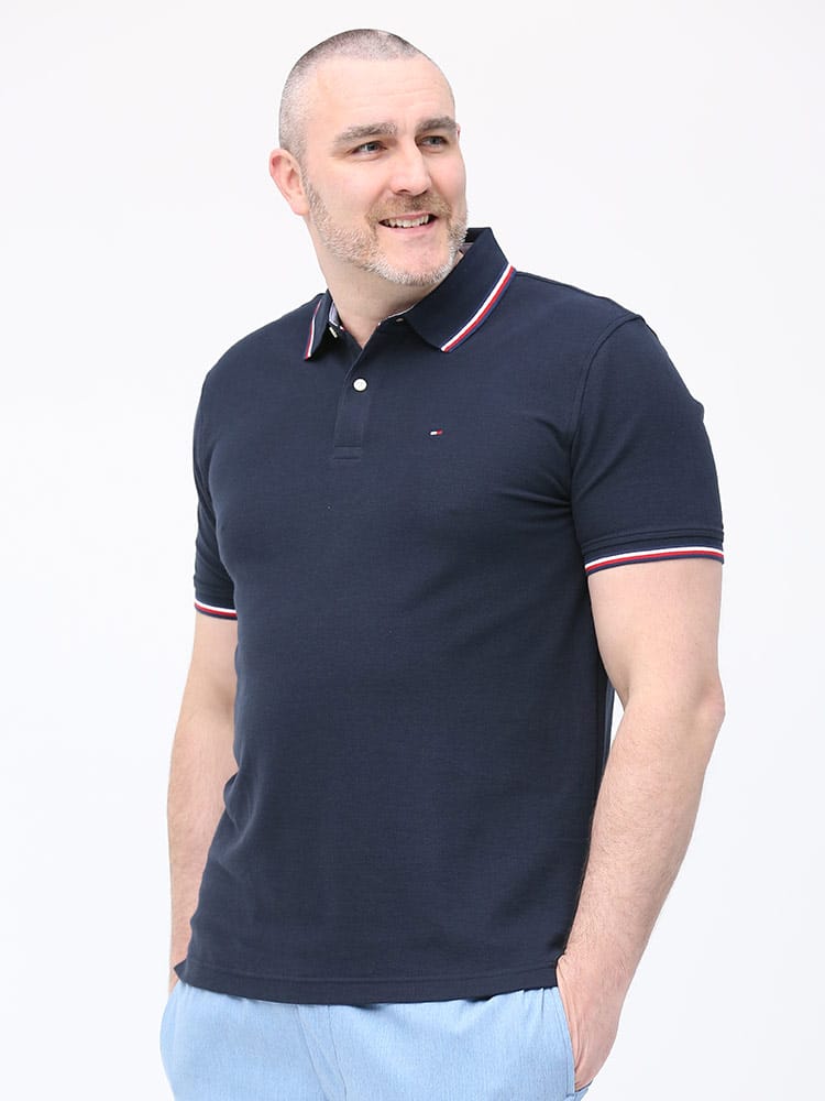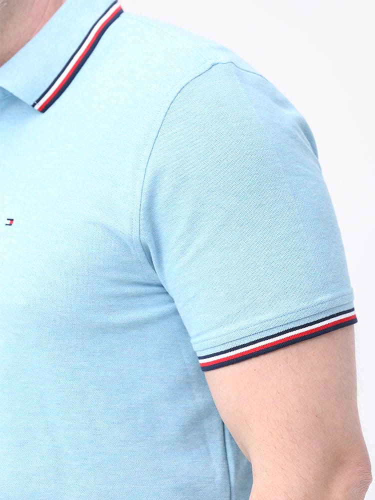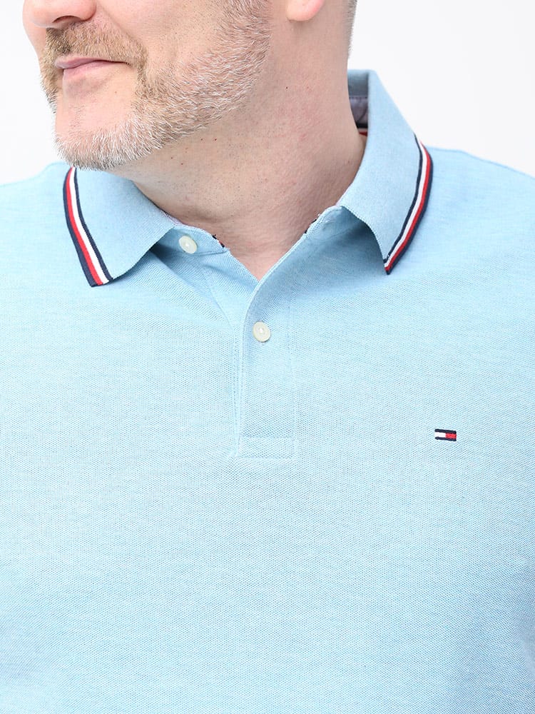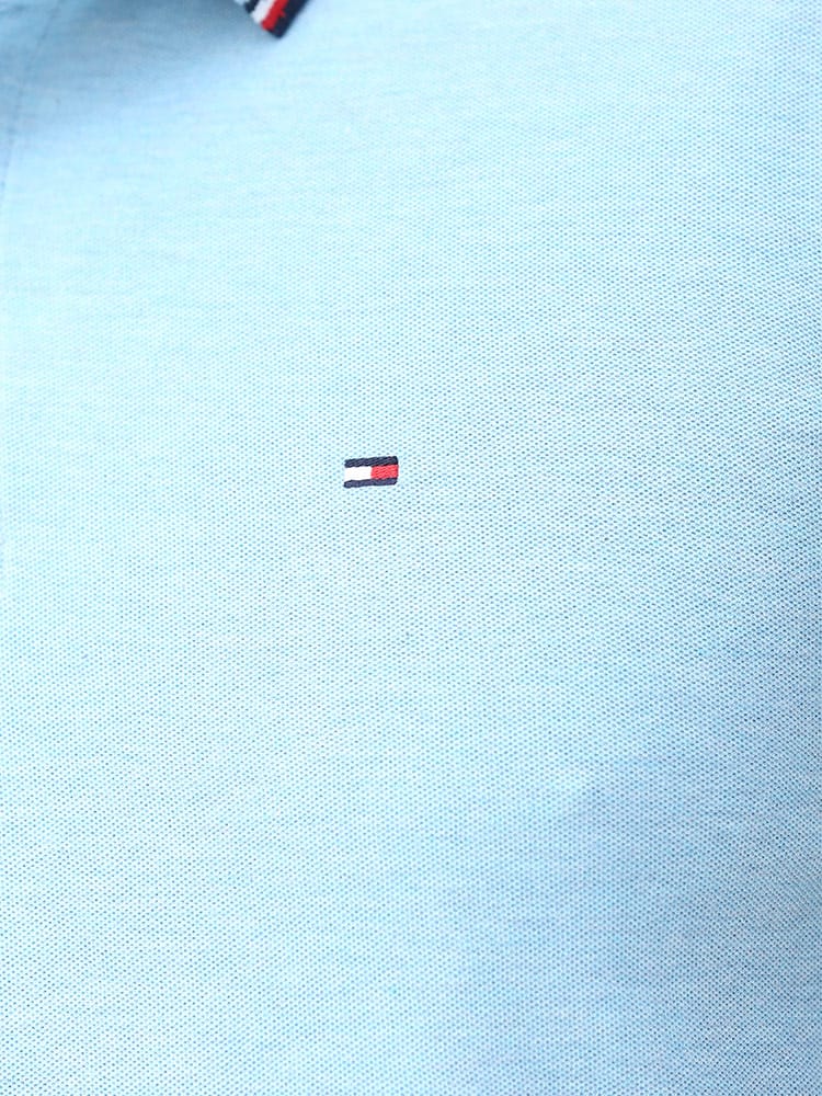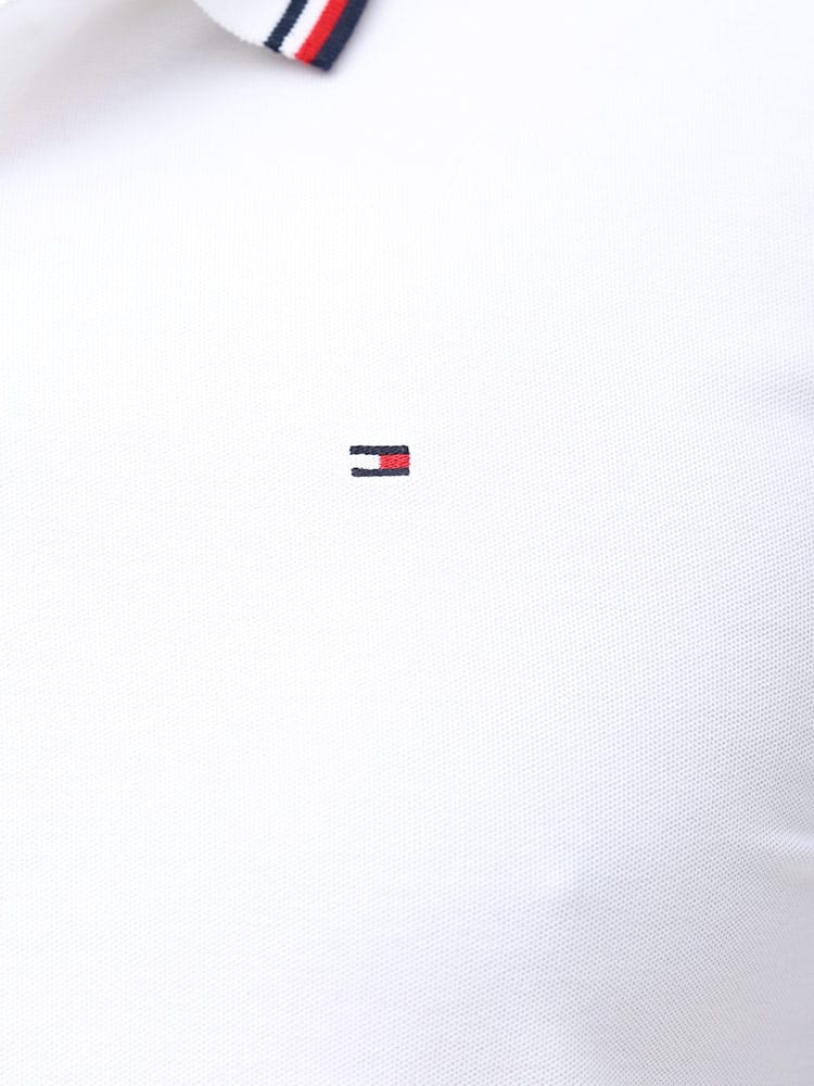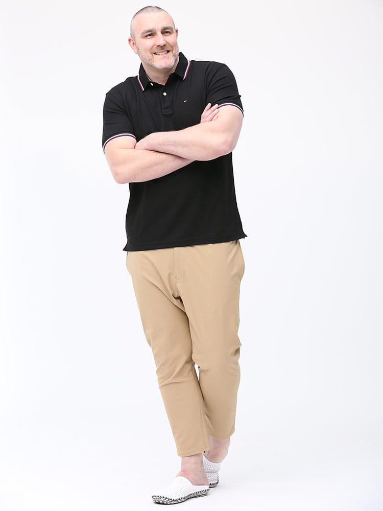 ドライとストレッチで快適な着心地のTOMMY HILFIGERのライン ワンポイント 半袖 ポロシャツです。襟と袖のラインデザインがアクセントをプラス。左胸にさりげないロゴ刺繍。裾サイドにスリット入り。カジュアルスタイルにおすすめの一枚です。