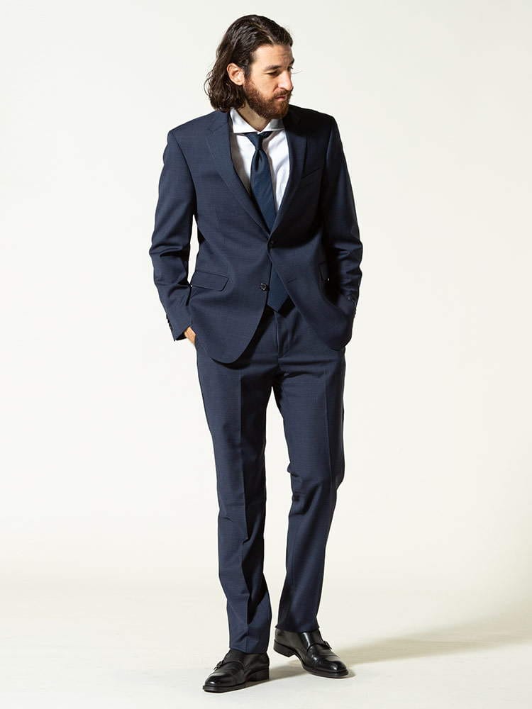 仕様 :外側ポケット×3つ / 内側ポケット×3つ / シングル2つボタン / セッパタイプ / 額縁あり / サイドベンツ / 総裏 / 通気性 / 防シワ性 / ストレッチ