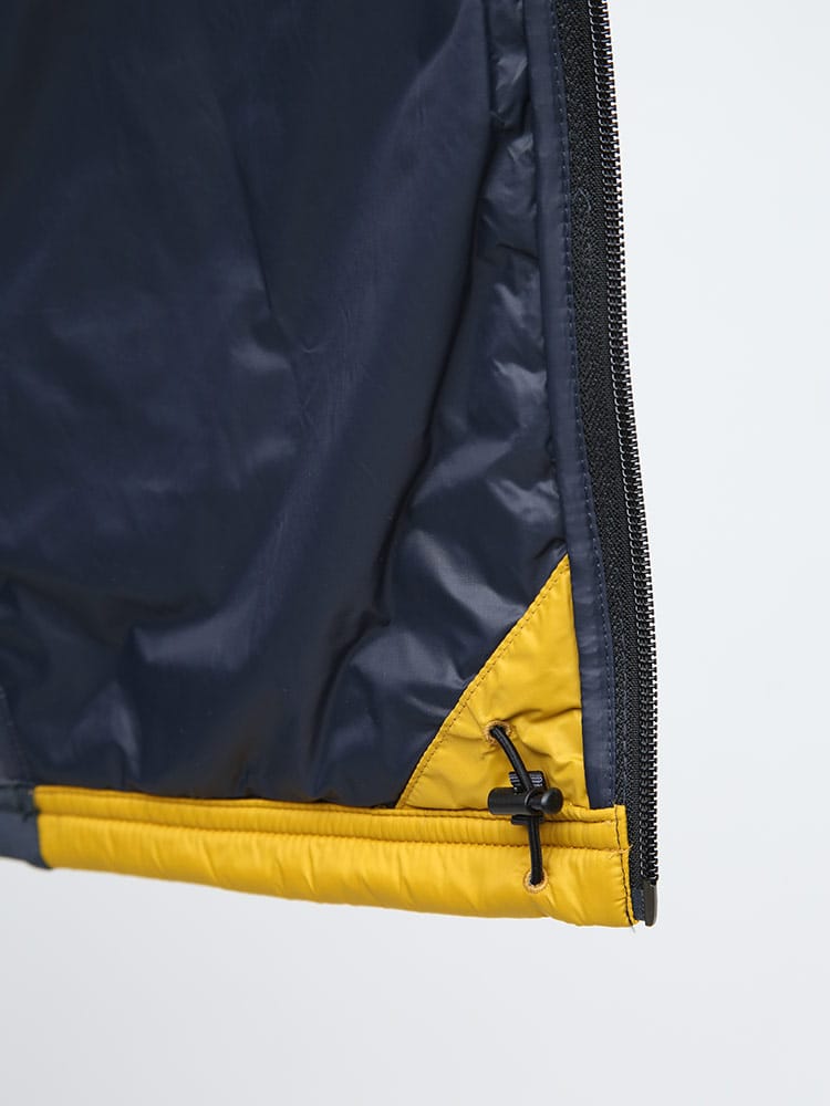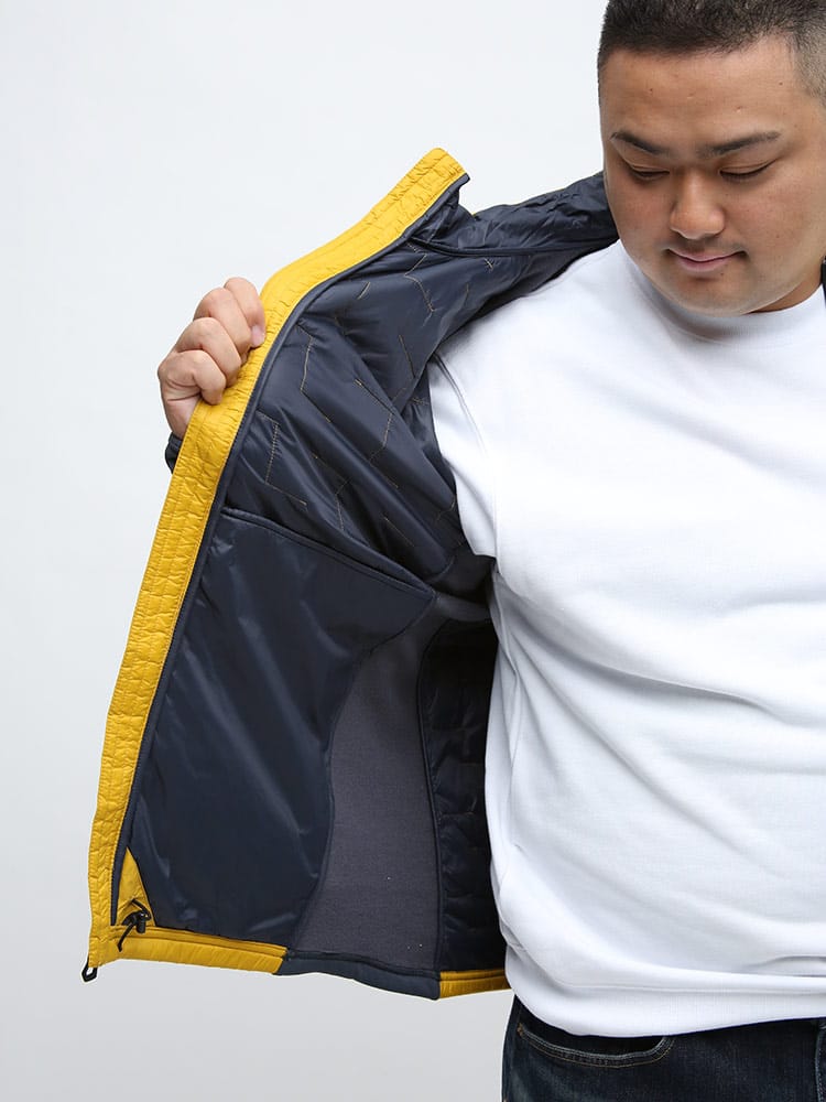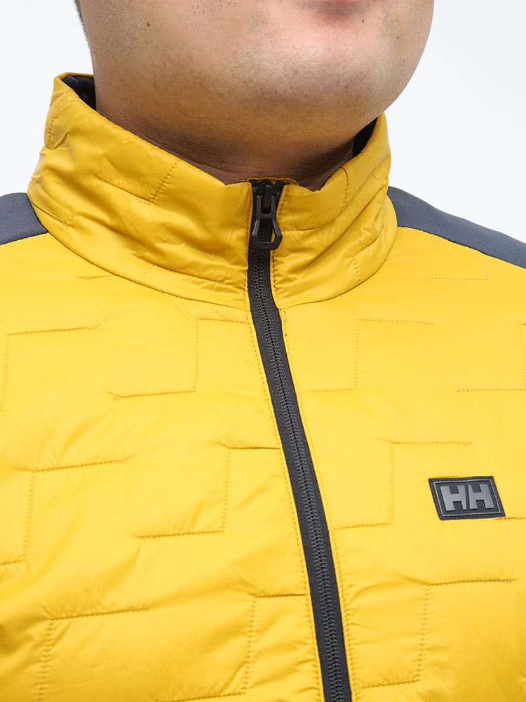 軽量で通気性のあるHELLY HANSENのフルジップ スタンド 中綿 ジャケット LIFALOFT HYBRID JACKETです。左胸のラバーロゴがポイント。軽量で通気性かつ保温性に優れています。効果的なLifaLoft断熱材と伸縮性のある滑らかなフリースパネルを使用して設計されているため、動きやすく快適な着用感を提供します。裾はドロコード付きでサイズ調整出来ます。