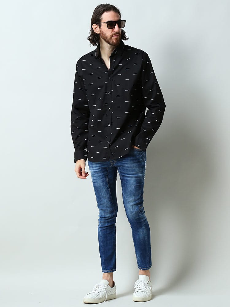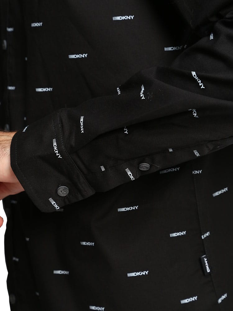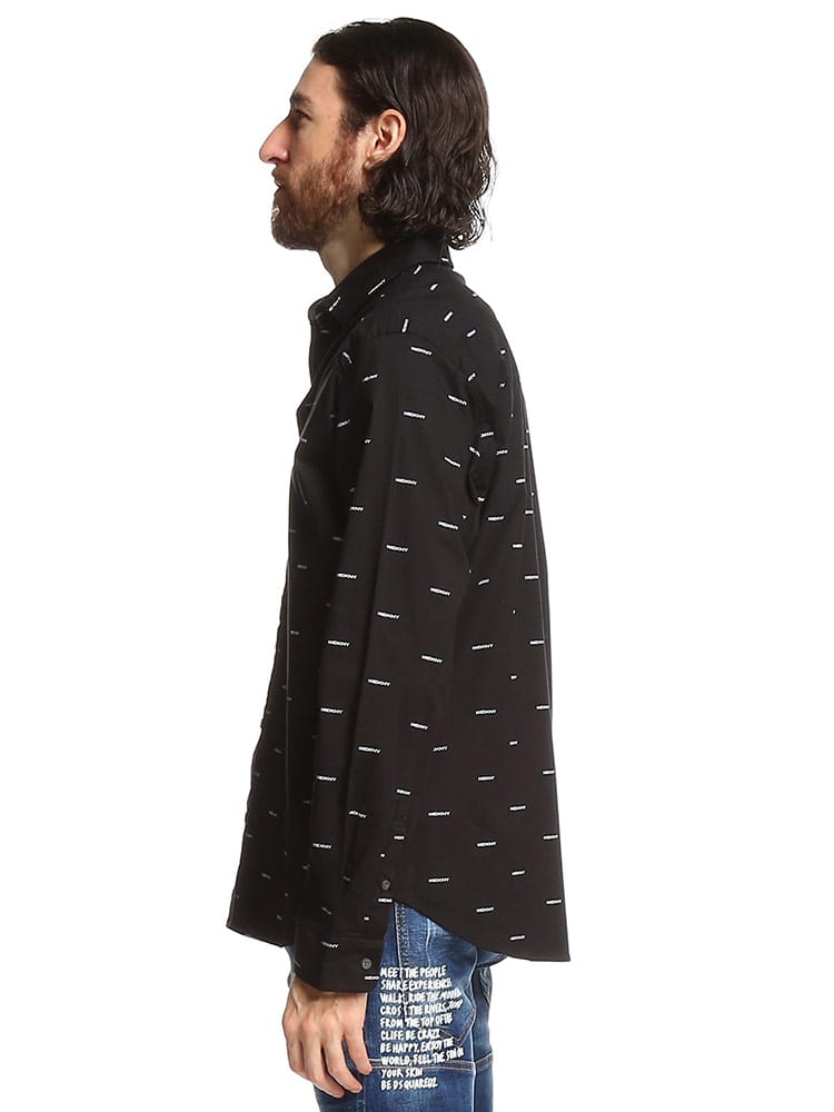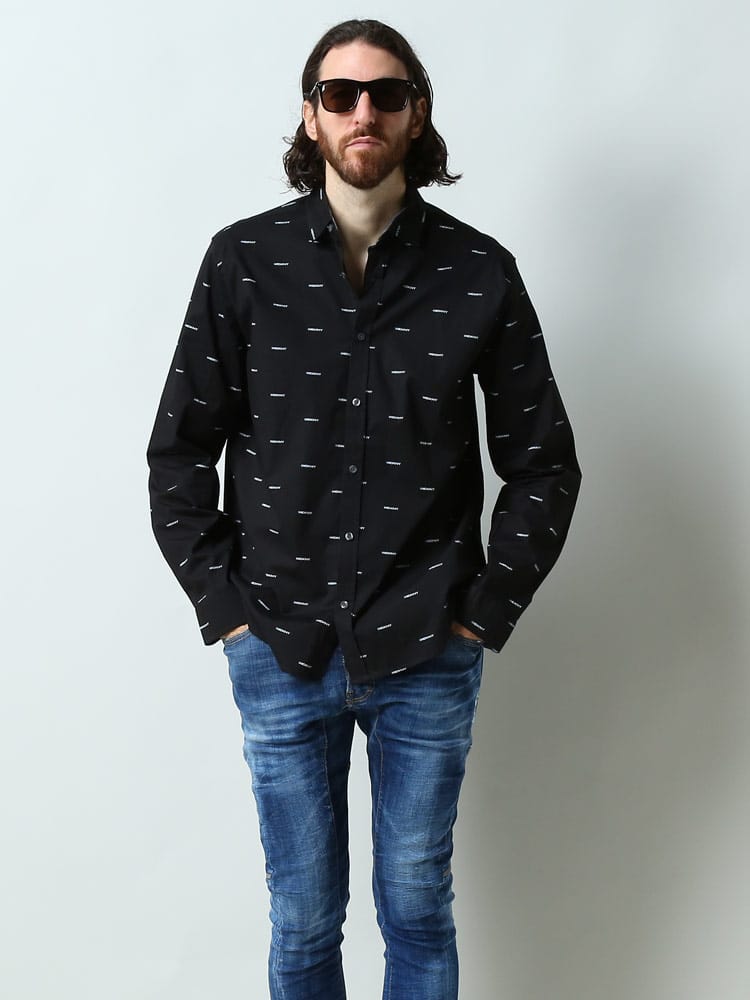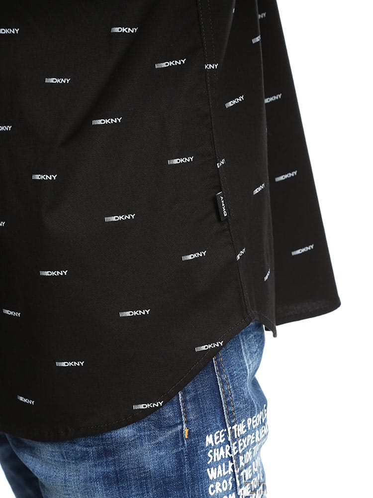 光沢感のあるブロードのシャツです。全体に"DKNY"のプリントが施されていて1枚で着ていただいても存在感のある1枚です。レギュラーフィットでストレッチも効いているのでジャストサイズでキレイ目に着て頂くのがおススメです。DKNY(ダナ キャラン ニューヨーク)はアメリカのファッションデザイナーDonna Karanのディフュージョンライン。1989年に創業し、元々デザイナーの愛娘からインスパイアされて生まれたDKNYはメインラインのDONNNA KARAN NEW YORKよりも若々しくリーズナブルなコレクションとして展開。ホームウェアやパフュームへもラインを拡大し、アパレル同様、世界中で広く愛されています。