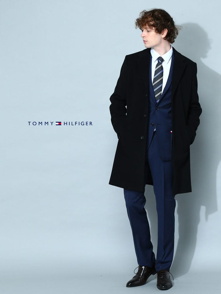 トミーヒルフィガー ウール混 チェスターコートが入荷致しました。定番のチェスターコートはカジュアルにもビジネスにもピッタリの人気コートです。しっかりした厚手の生地で高級感がありますよ。今っぽいシルエットで少しオーバーフィットになります。( スタッフS )