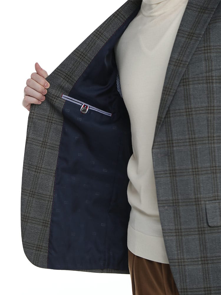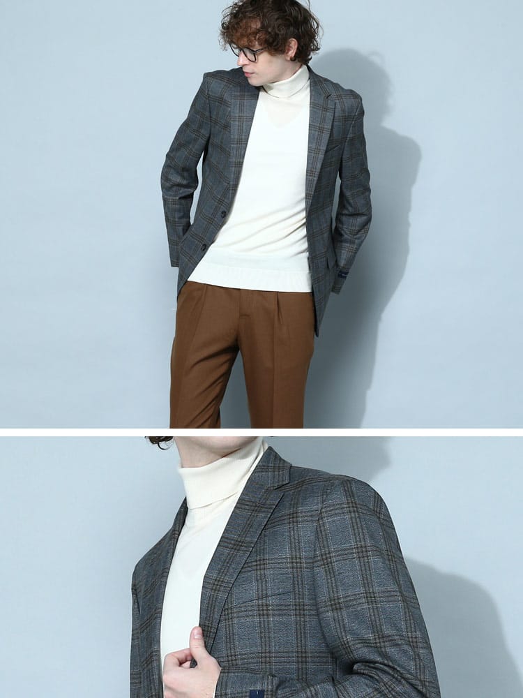 仕様 :外側ポケット数×3つ / 内側ポケット数×3つ / シングル2つボタン / 総裏 / サイドベンツ / セッパタイプ / 額縁あり