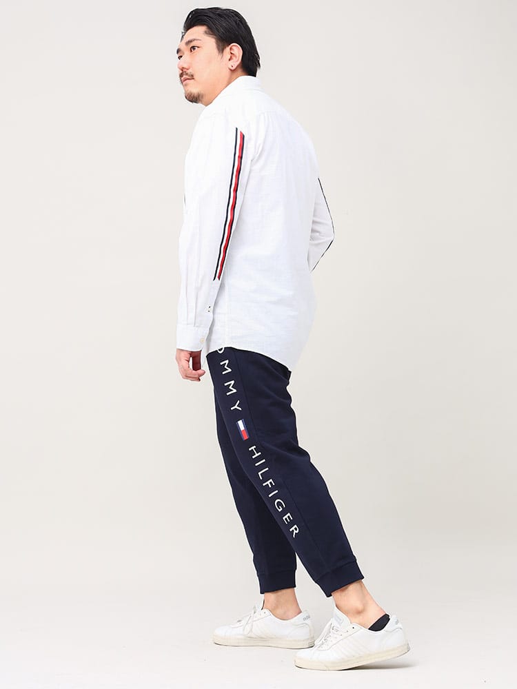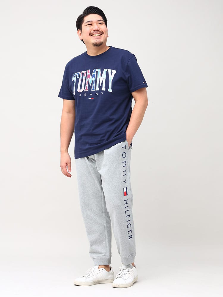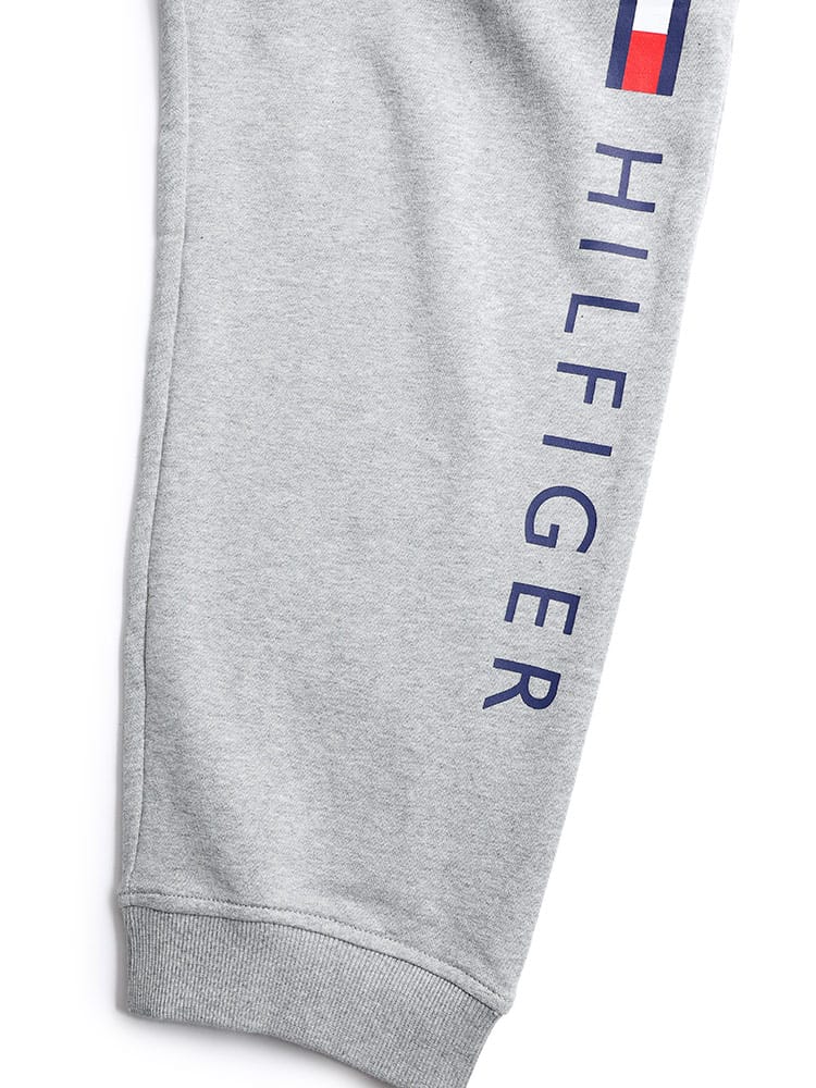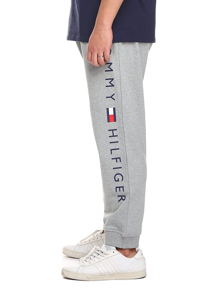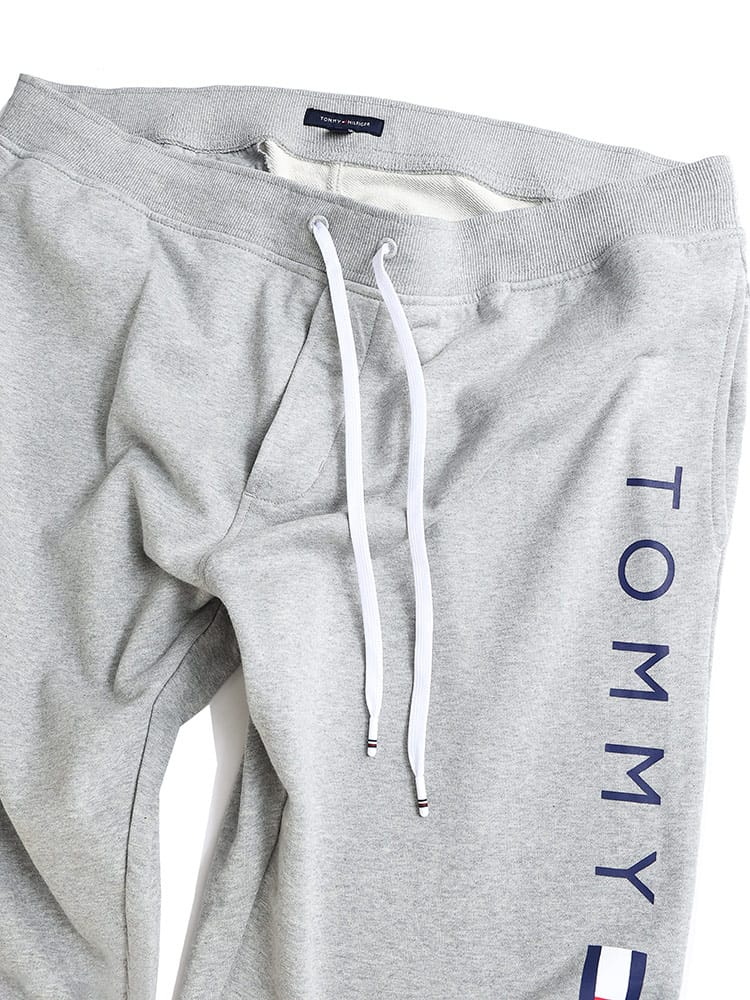 トミーヒルフィガーのジョガーパンツです。普段使いからルームウェア、スポーツなどのアクティブシーンまで活躍するスウェットジョガーパンツ。左足部分に流れるブランドロゴプリントが特徴的。幅のあるリブウェストが、ゆったりとした履き心地を演出。ドローコード付きなので細かな調節が可能となっています。