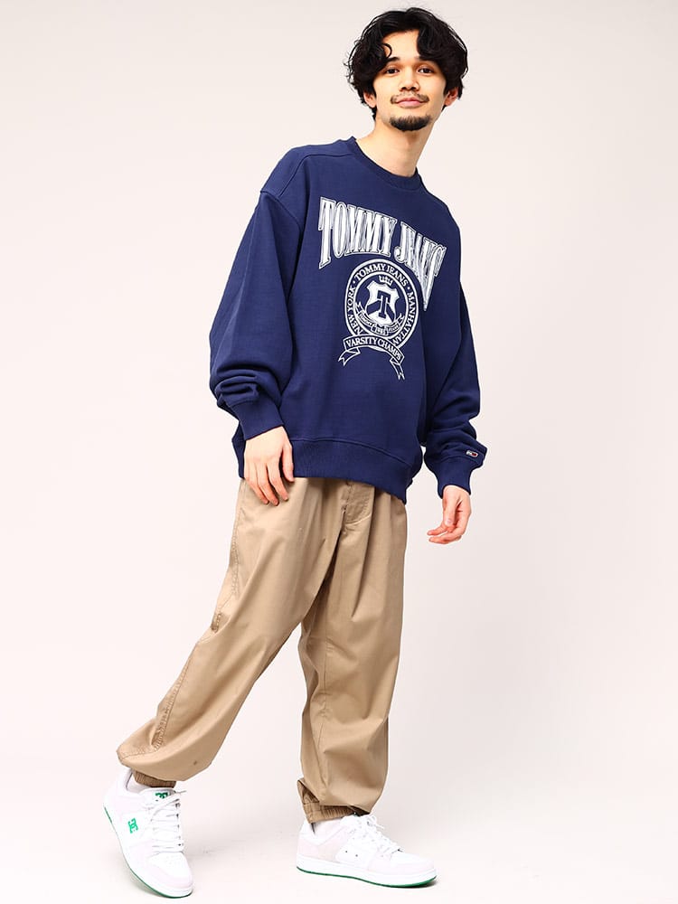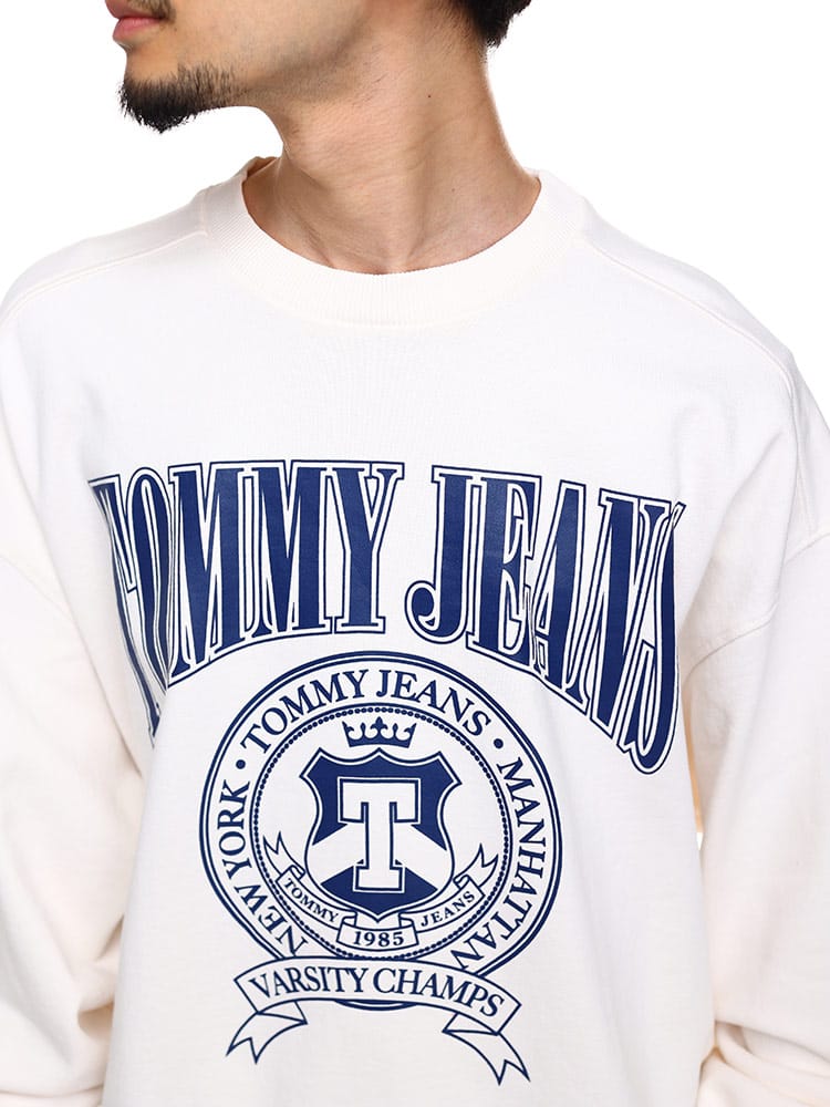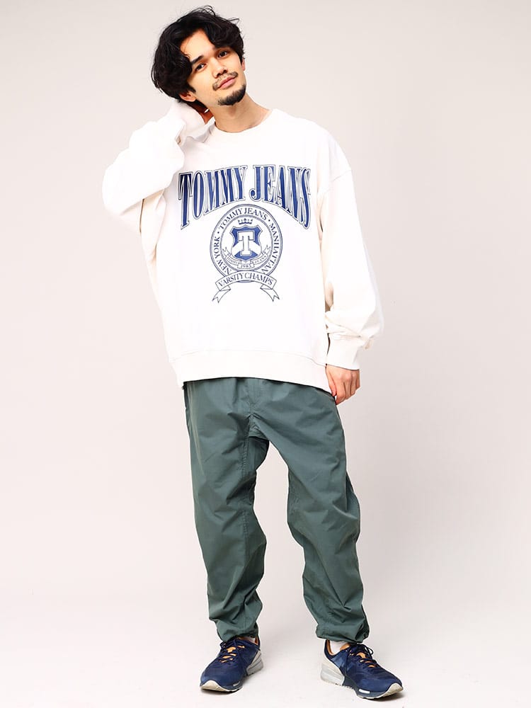 トミージーンズのカレッジスタイルスウェットです。フロントにはインパクトのあるプリント。ピュアコットンで肌触りの良い着心地のっちゃくとなっています。ゆったりとしたシルエットが魅力。