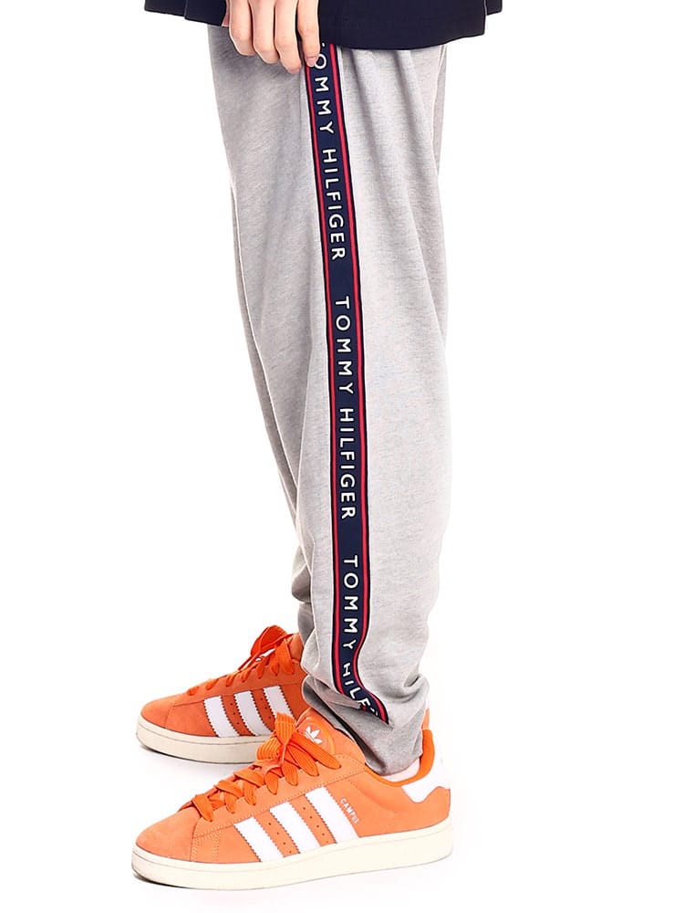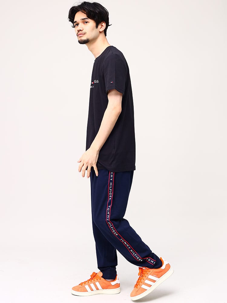 トミーヒルフィガーのサイドロゴライン スウェット ジョガーパンツです。やや薄手で軽量感のある、穿きやすいスウェットパンツ。両サイドに流れるブランドロゴラインがスマートなシルエットを印象付けてくれるデザイン。ウエストはゴム仕様となっています。ドローコードも入っているので細かな調節が可能。
