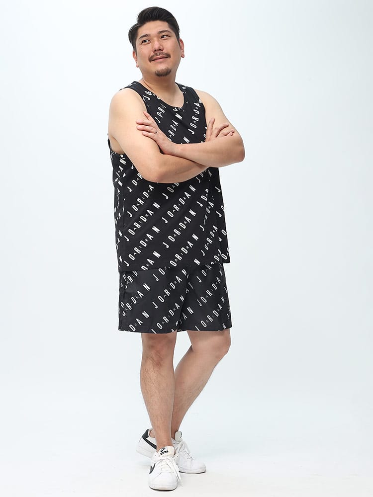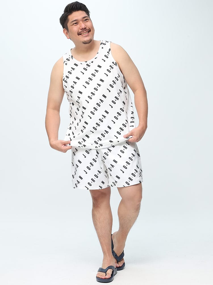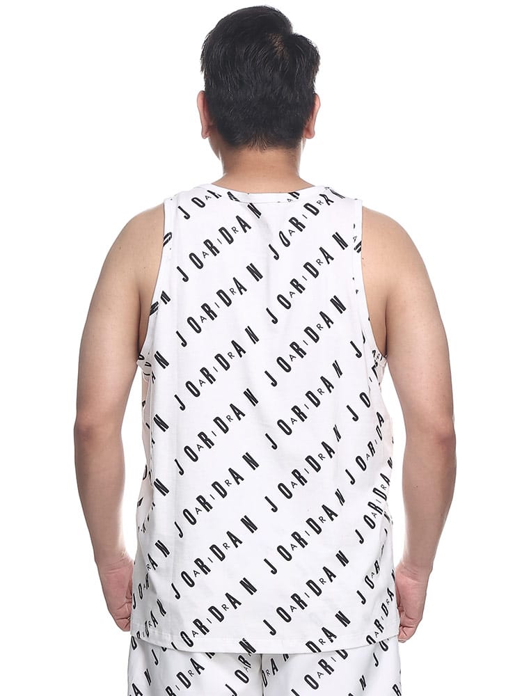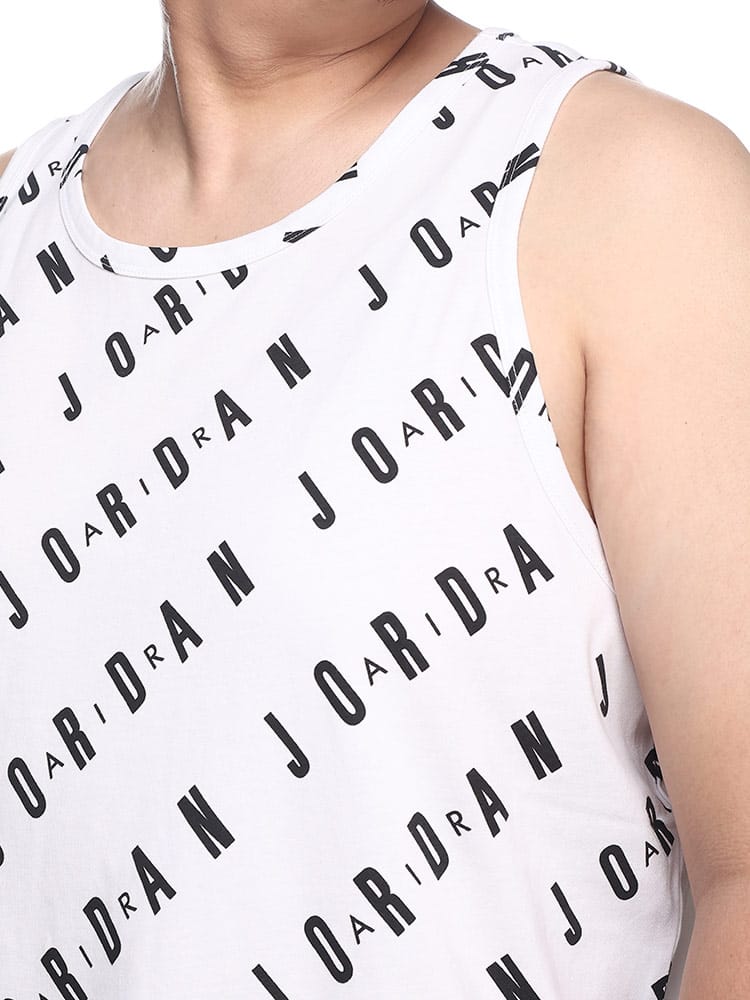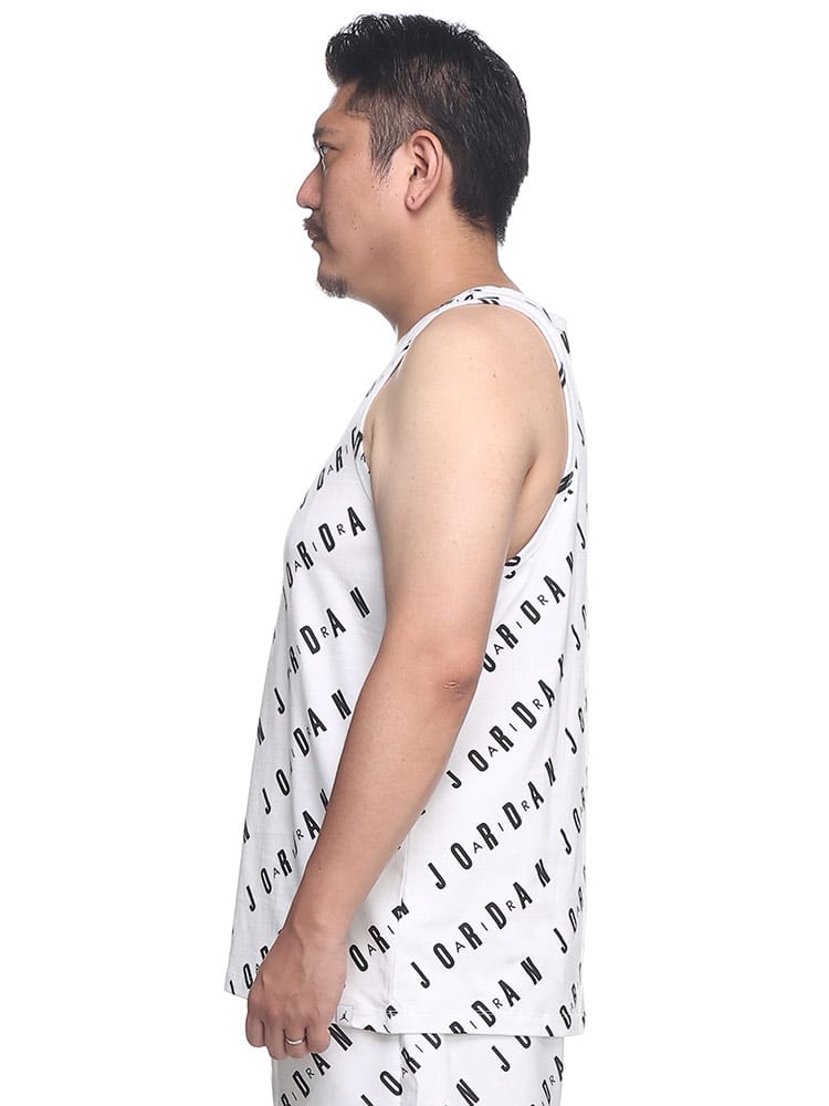 AIR JORDANロゴパターンが全体を埋め尽くすタンクトップシャツです。コットン100%の滑らかな着心地と適度なストレッチ性が、普段使いからスポーツシーンなど、あらゆる場面で活躍してくれる一着。