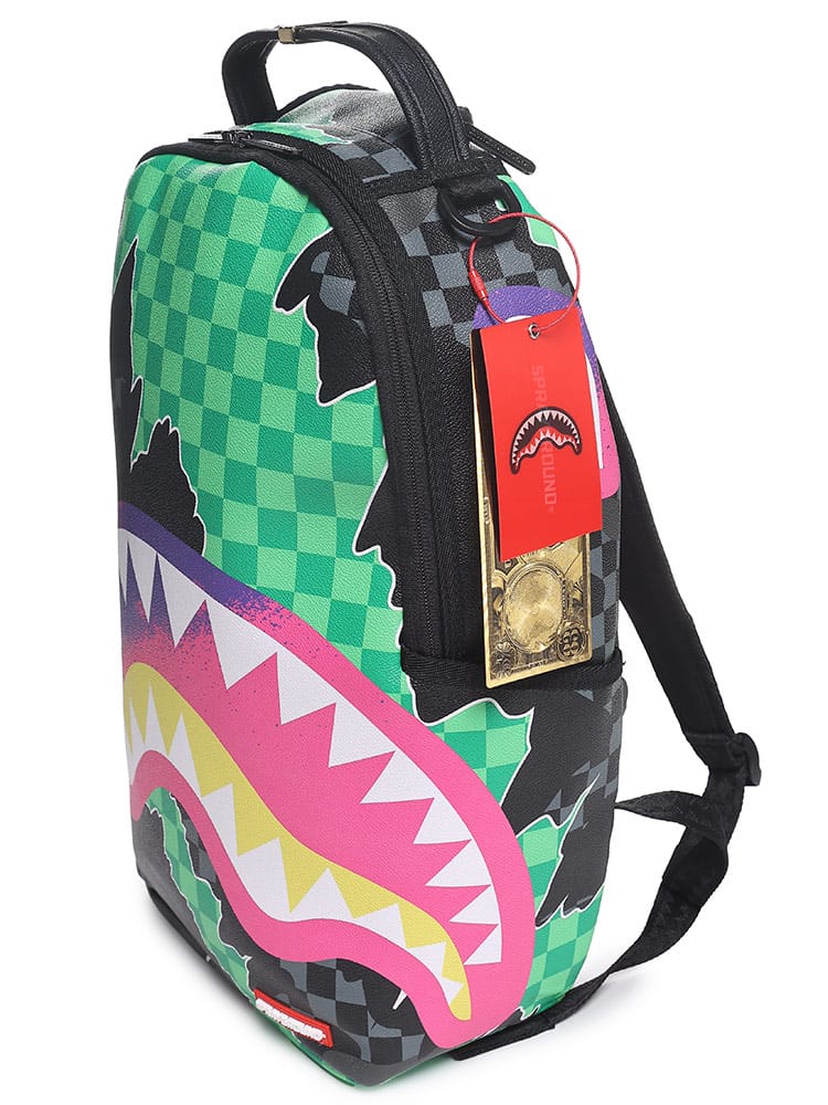 機能性の高いバックパックをベースに独特なビジュアルが個性溢れるアイテム。バッグ自体をシャークの顔に見立てたデザインにチェック柄やフラワー、和風なテイストなど、カラフルな色使いが特徴的。ストリートで目をひくこと間違い無しのバックパックです。