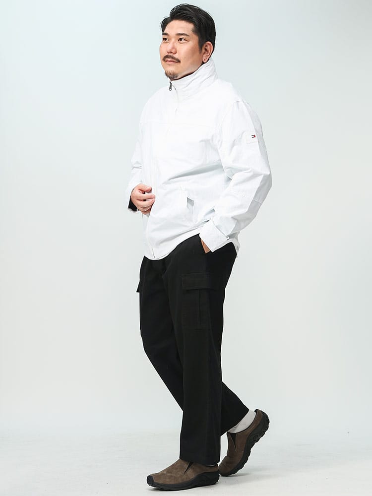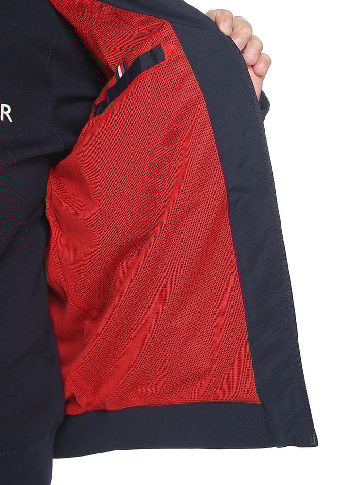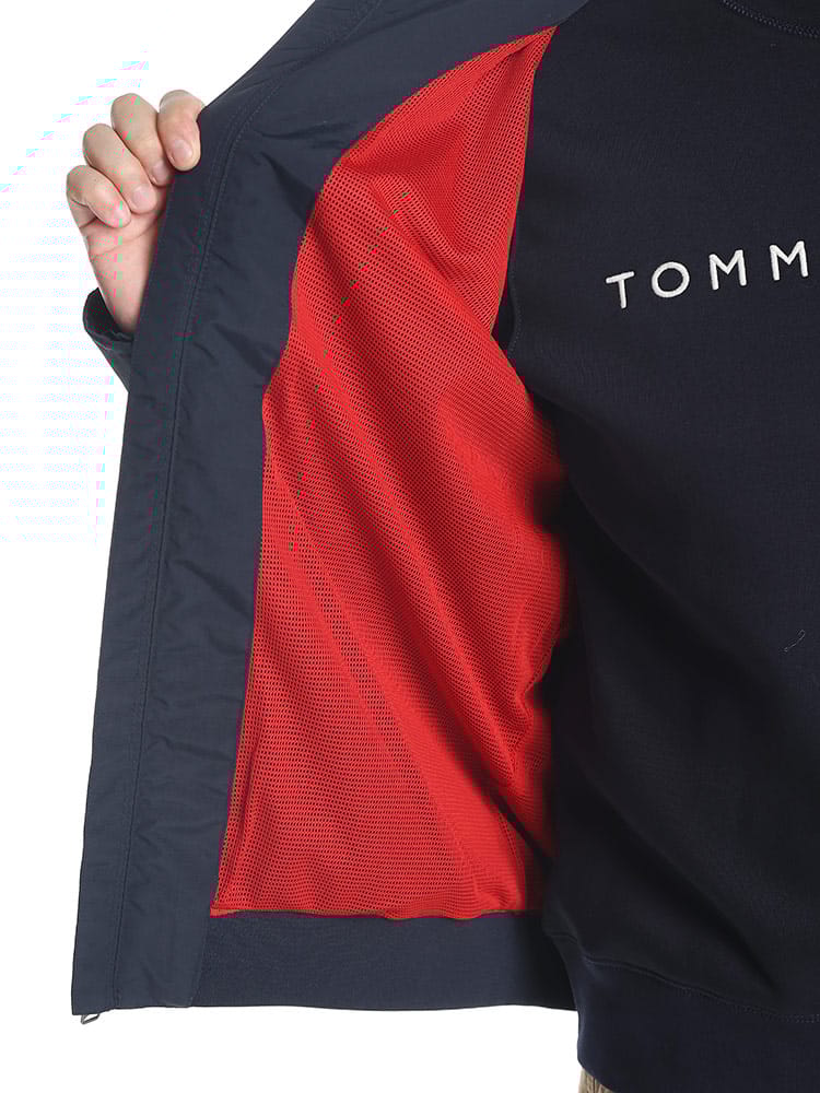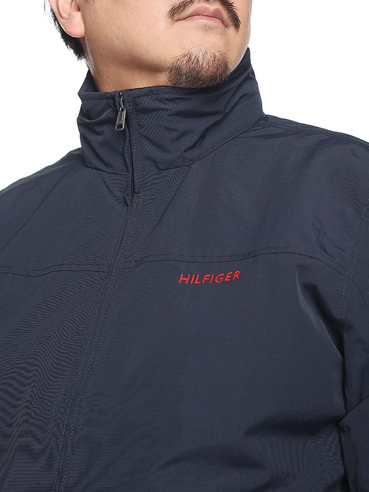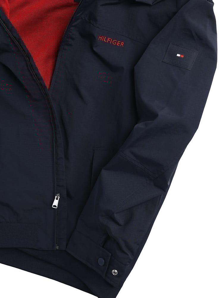 トミー ヒルフィガーのメンズジャケット。襟の中にフードが収納された2WAY仕様となっています。裏メッシュにより高い通気性で快適な着心地。撥水加工が施されているので突然の雨にも対応してくれます。左胸にさりげなく「HILFIGER」刺繍が入っています。リサイクル素材で作られているので環境に優しい、サステナブルなウェアとなっています。