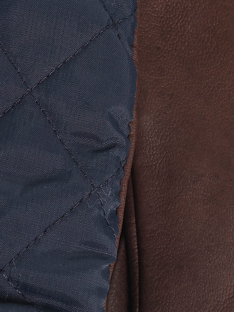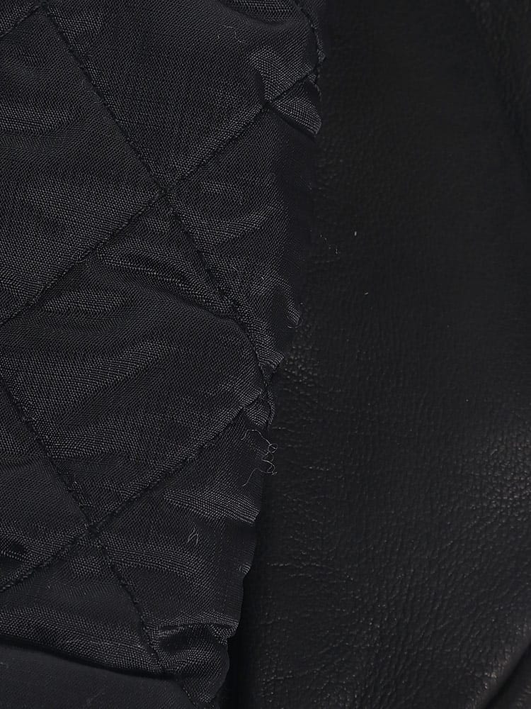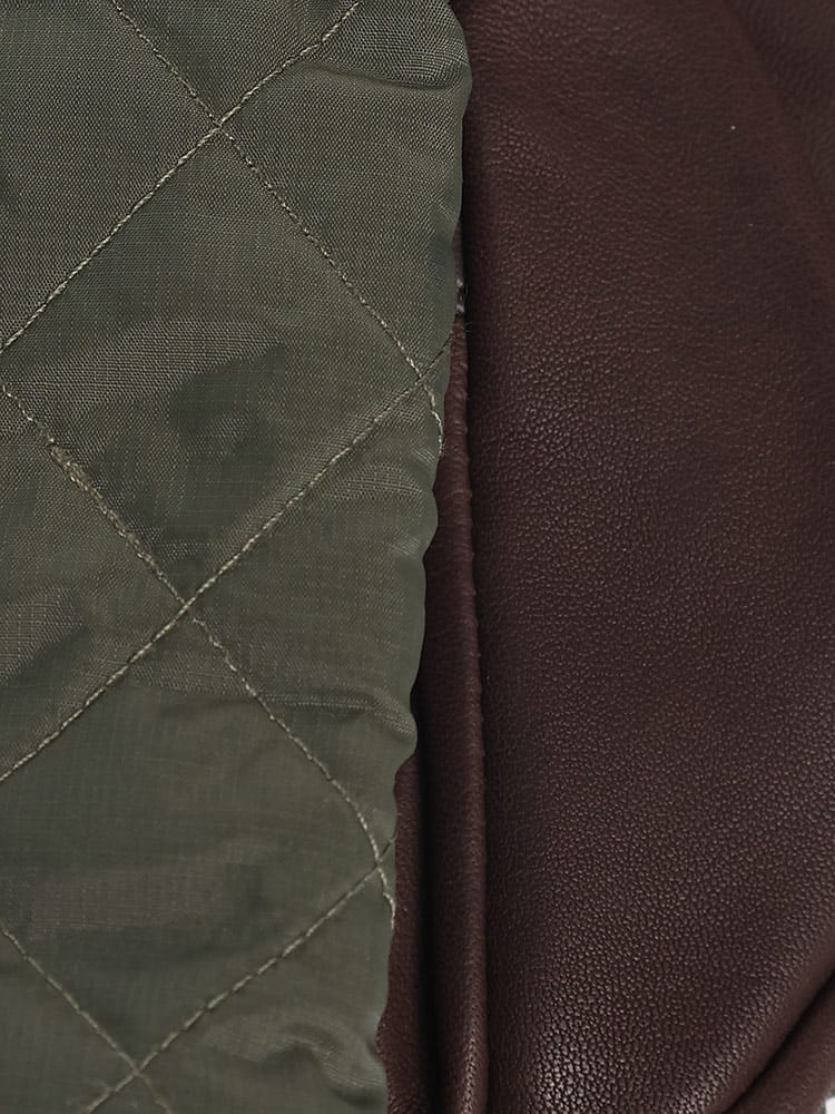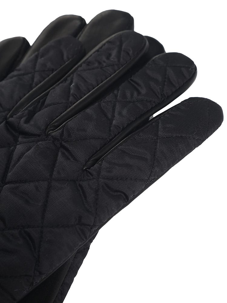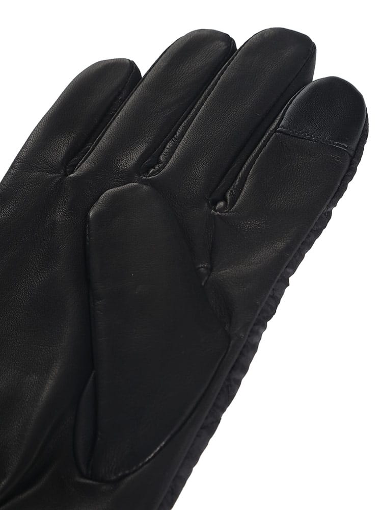 素材 :[表地後ろ部分]ナイロン100% [表地掌部分]羊革100% [裏地]ポリエステル100% [芯地]ポリプロピレン65% ポリエステル35% [詰物]ポリエステル100% [袖口]毛100%