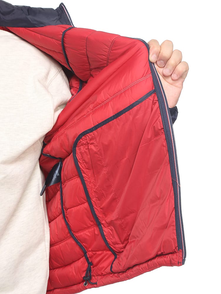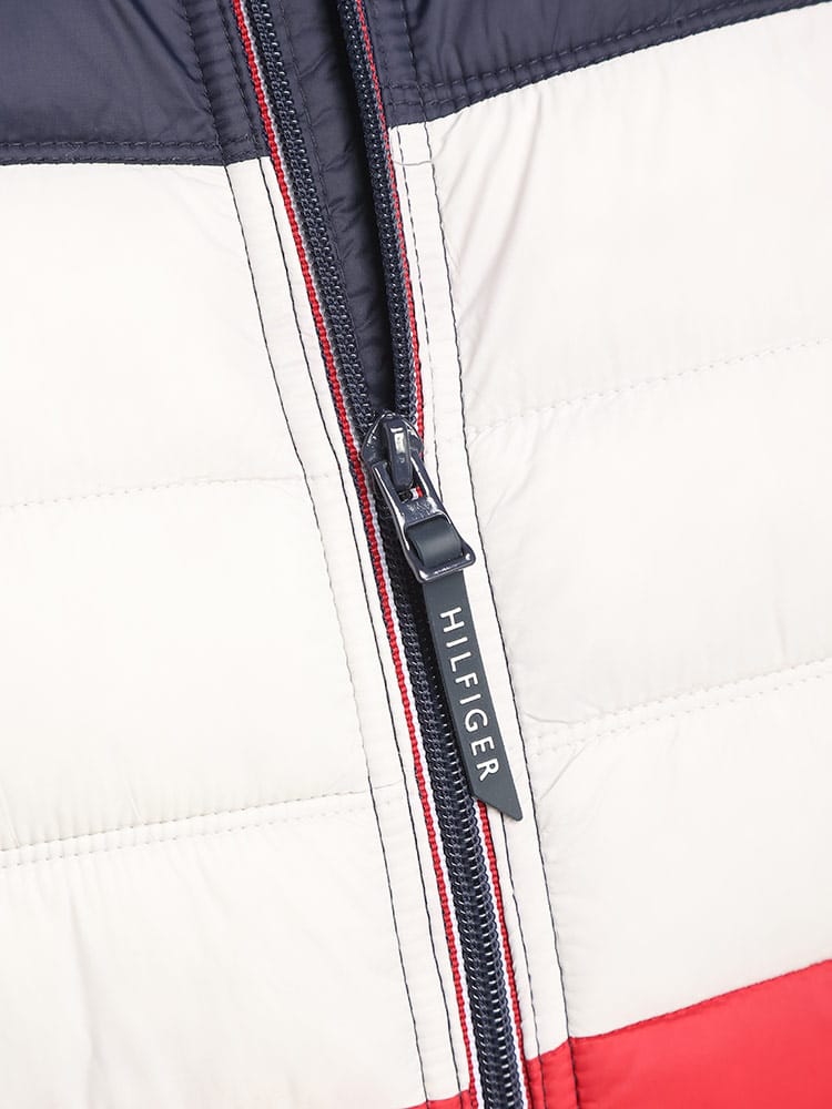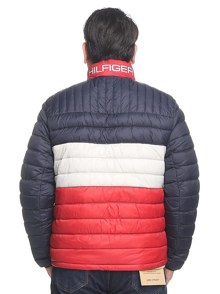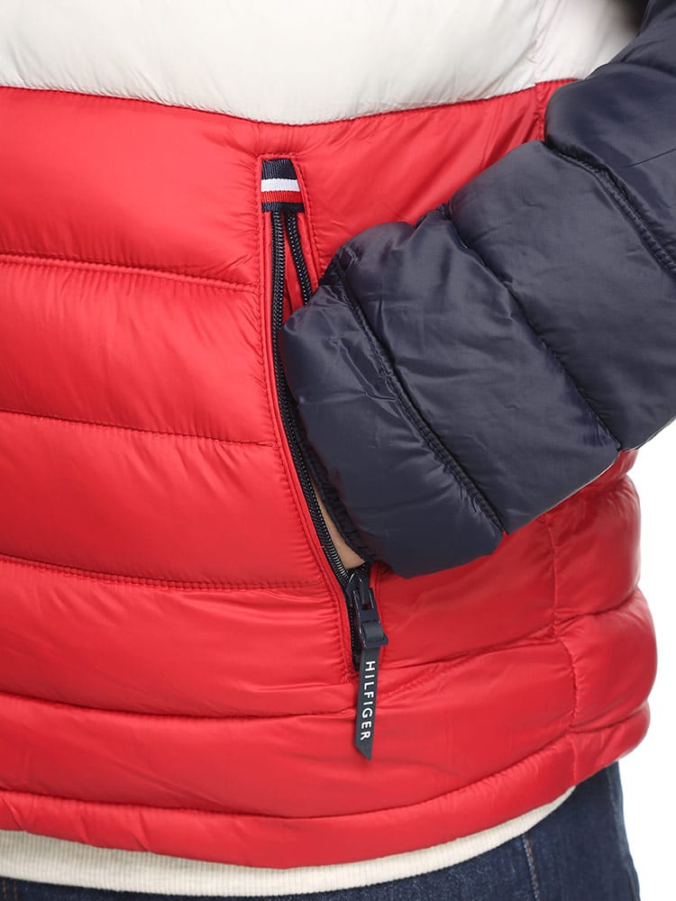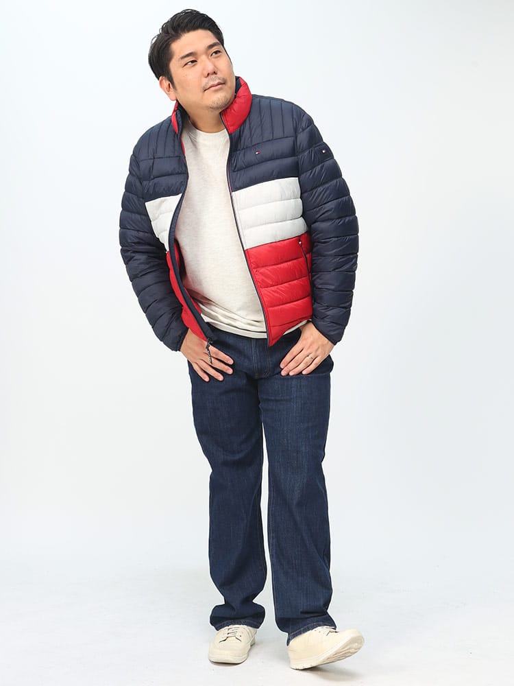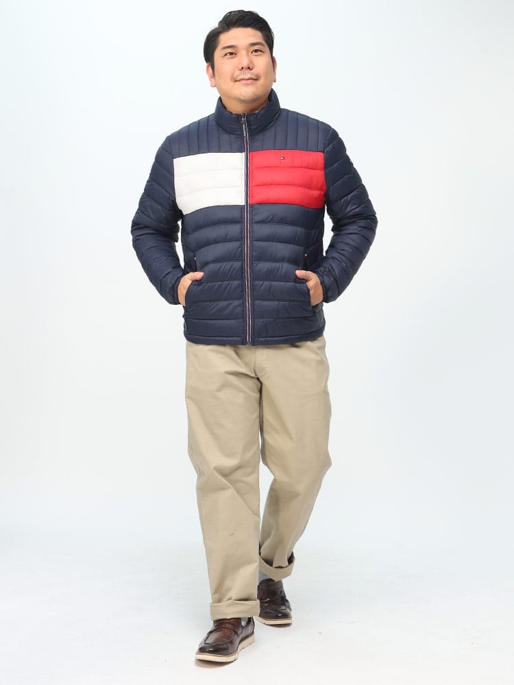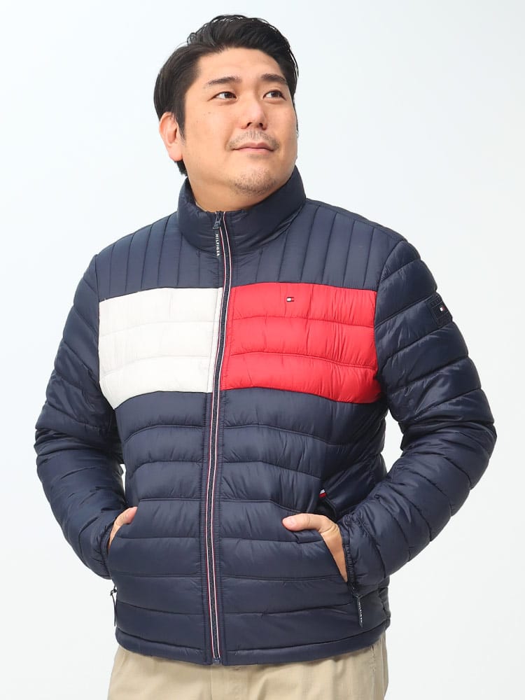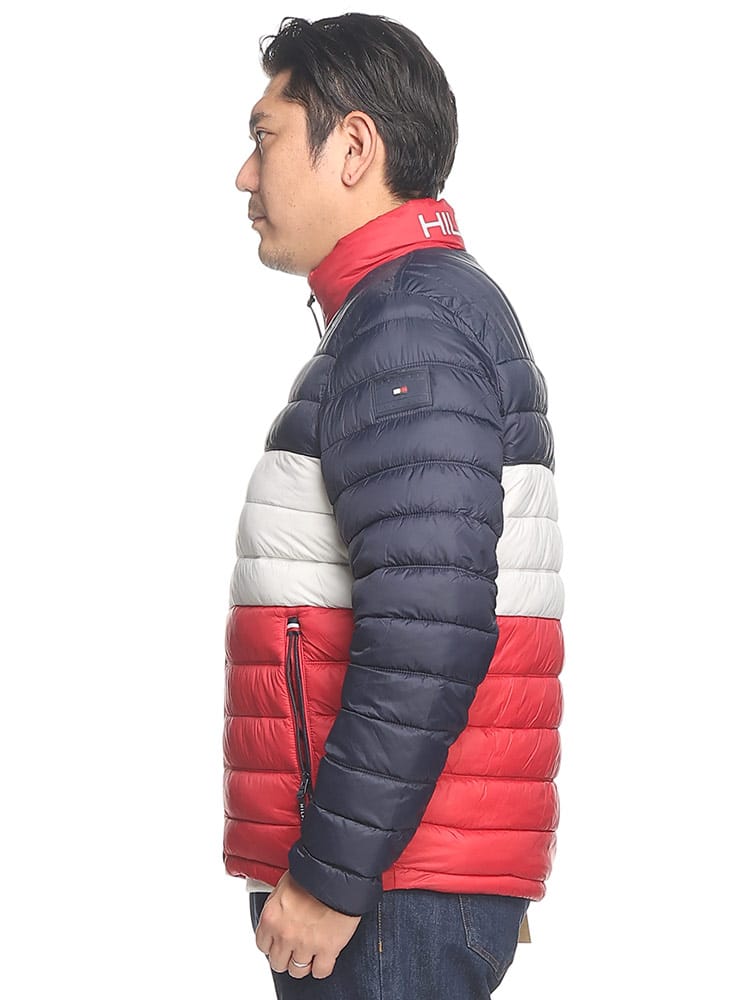 トミーヒルフィガーのナイロン切り替え中綿ジャケットは、フルジップ式で裾にドローコードを配し、フィット感を調節可能です。軽量で持ち運びに便利なパッカブル機能も備えており、アクティブなシーンでもスタイルを保ちます。機能的でありながらファッショナブルなアウターウェアです。