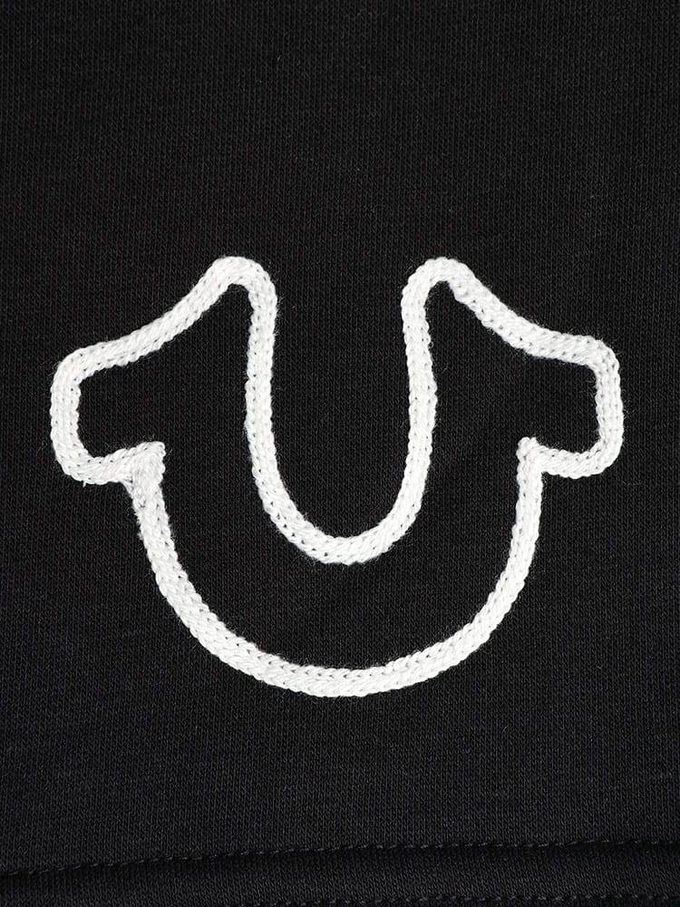 刺繍入りホースシュー スウェット ショートパンツは、日常使いに最適なショートパンツです。柔らかいコットン混紡生地で作られたこのラウンジ ショーツは、ドローストリング ウエスト、斜めのフロント ポケット、フロントに刺繍された馬蹄ロゴが特徴です。