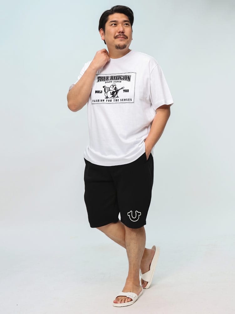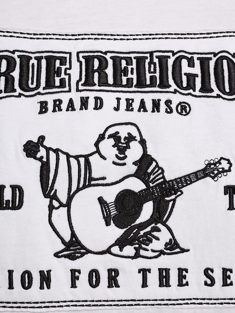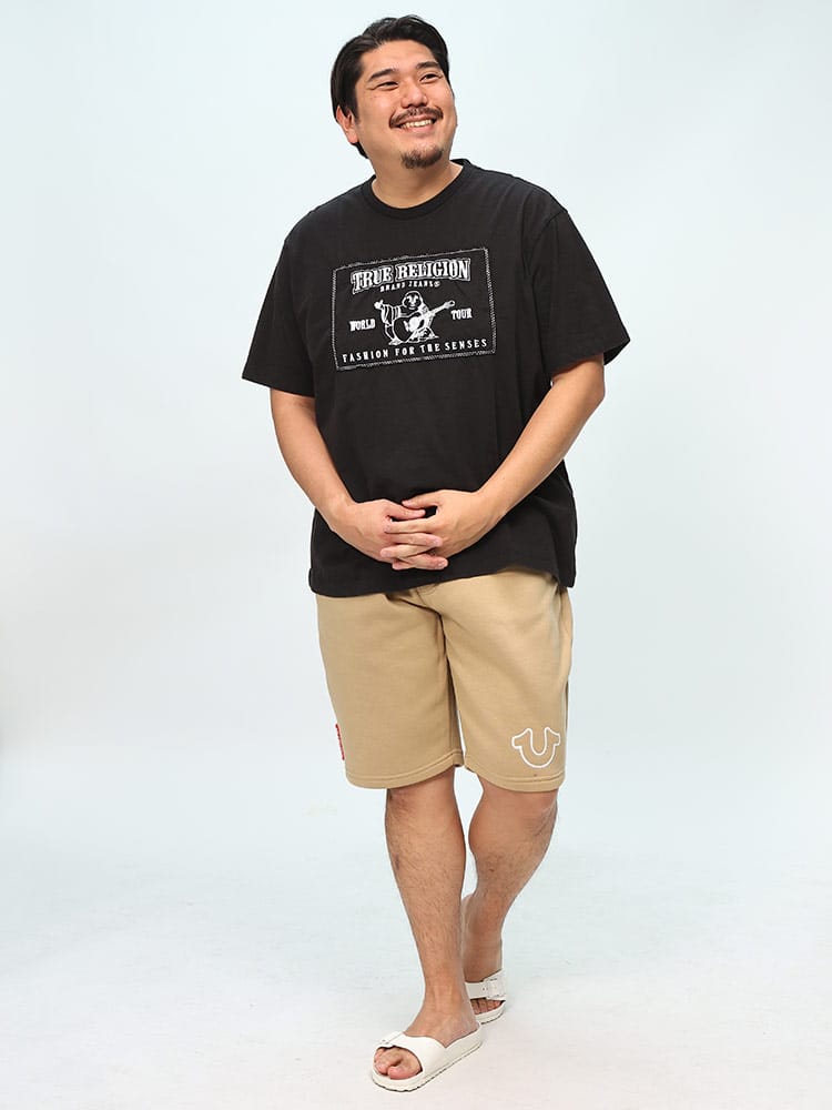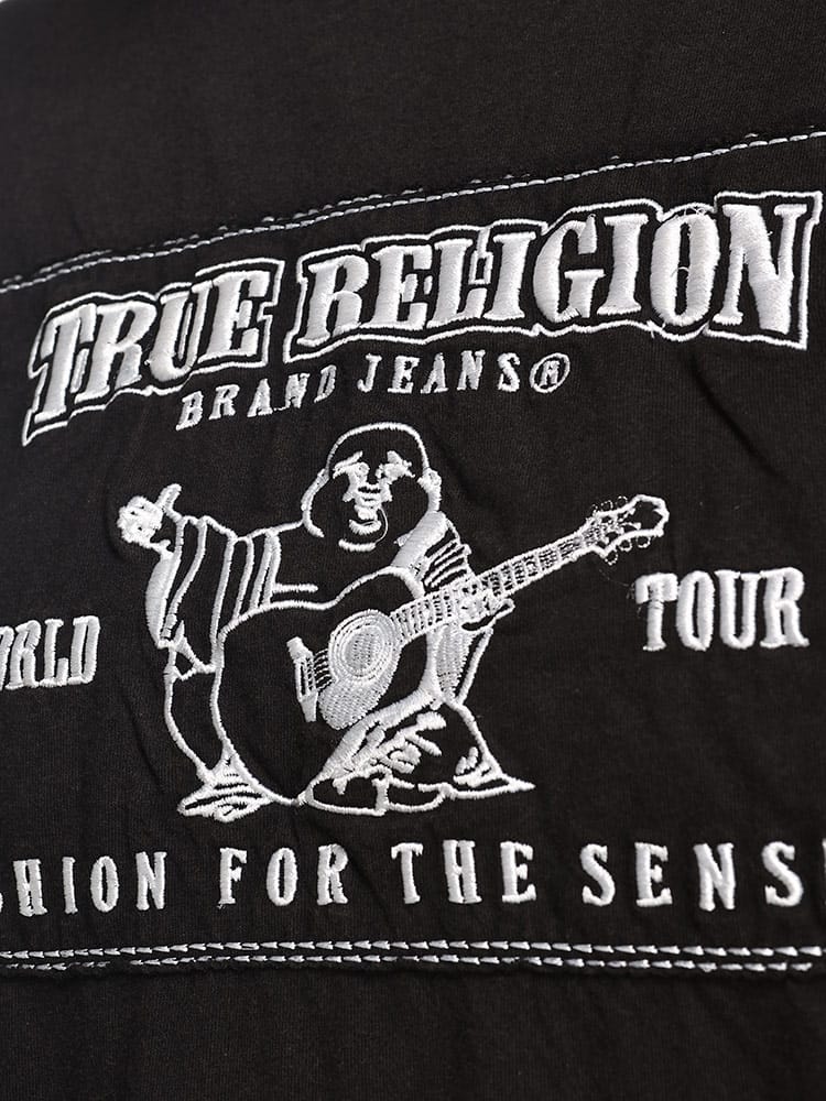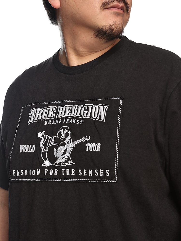 TRワールドツアー アップリケTシャツ。柔らかいコットンで作られたこのTシャツは、ベーシックなクルーネックの半袖。フロントにTrue Religion World Tourのアップリケをあしらって仕上げました。