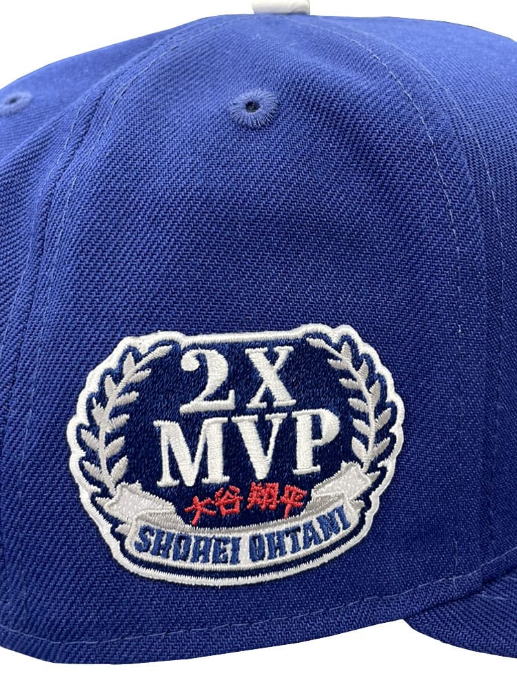 ニューエラの59FIFTYロサンゼルス・ドジャースキャップ。このモデルは大谷翔平が2度目のMVPを獲得した記念に特別にデザインされました。このキャップには、ロサンゼルス・ドジャースのロゴと大谷翔平の功績を称えるワッペンが付いています。野球ファンやコレクターにとって価値のある記念品です。