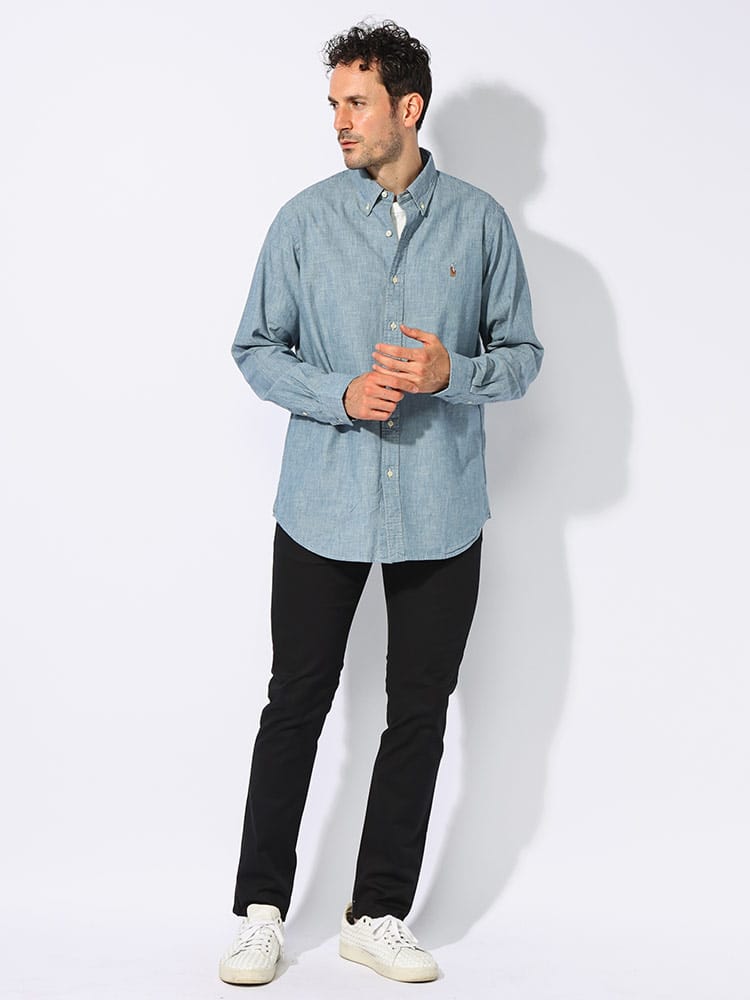 POLO RALPH LAURENはアメリカン・トラディショナルの代表的存在のRALPH LAURENのメインライン。ゆったりとしたフィットのインディゴ染めのコットンシャツ。薄手のファブリックにストーンウォッシュを施して長年着込んだルックに仕上げたアイテム。クラシックフィット、最もゆったりとしたシルエット。低いアームホールとゆったりとした袖。ボタンダウンのポインテッドカラー、ボタン付き前立て。長袖、ボタン付きバレルカフス。ボックスプリーツのスプリット バックヨークで心地良いフィット感と動きやすさを実現。左胸にマルチカラーのシグネチャーのポニー刺繍。洗濯機洗い可。