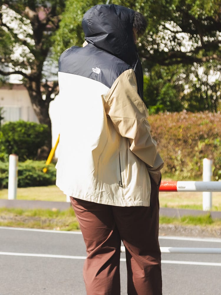 WindWall とは、ザ・ノース・フェイスが独自に開発した防風素材で、冷たい風を遮断しつつ、一定の通気性を保つため、アクティブなシーンでも快適に過ごせることが特徴です。