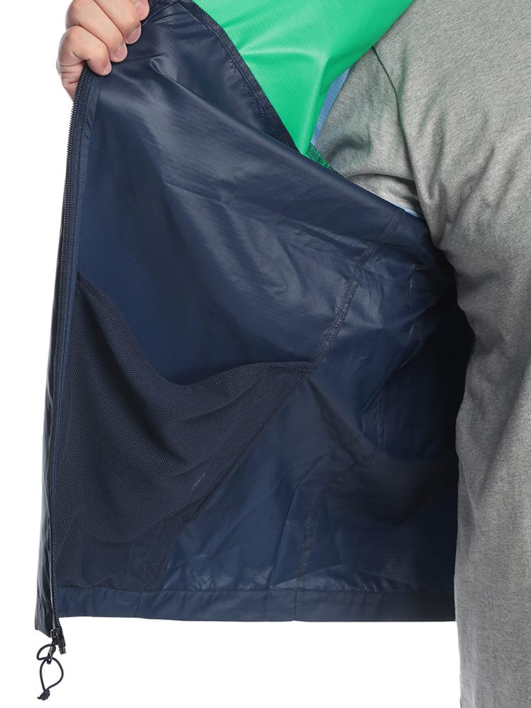 ジャケット自体が非常に軽量で、コンパクトに折りたたんで持ち運べるため、急な天候変化に対応したいときに便利です。バックパックやバッグの中に収納しやすく、かさばらないデザインになっています。