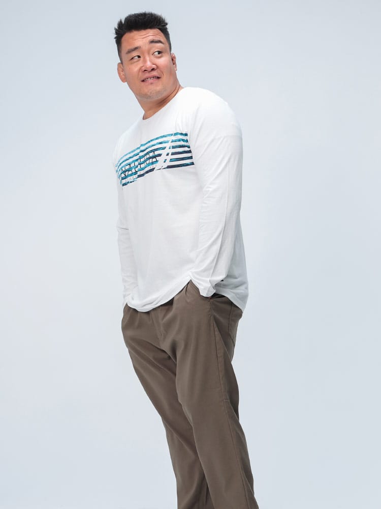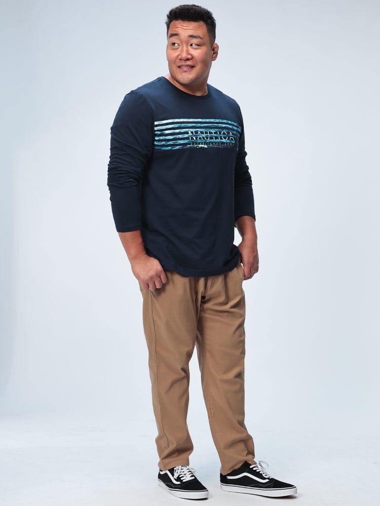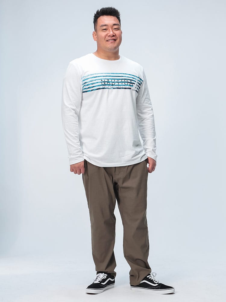 胸元にアイコニックなラインロゴプリントが映える、シンプルながらも存在感のあるデザイン。