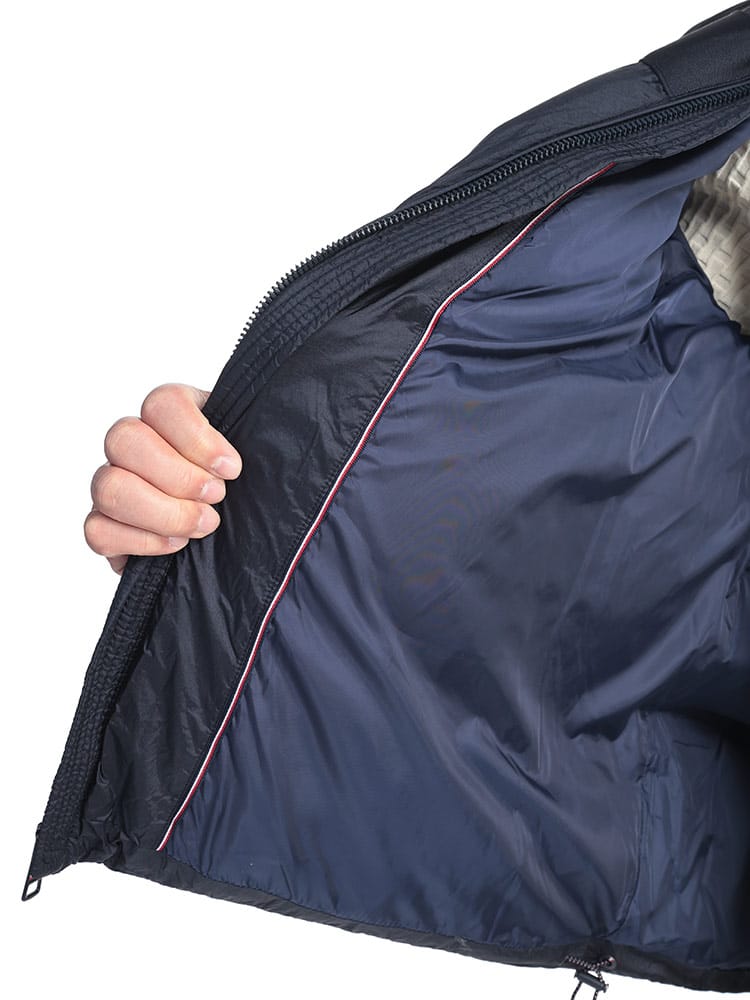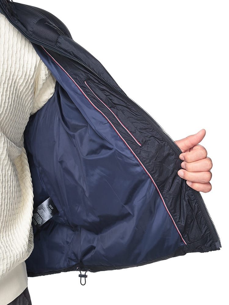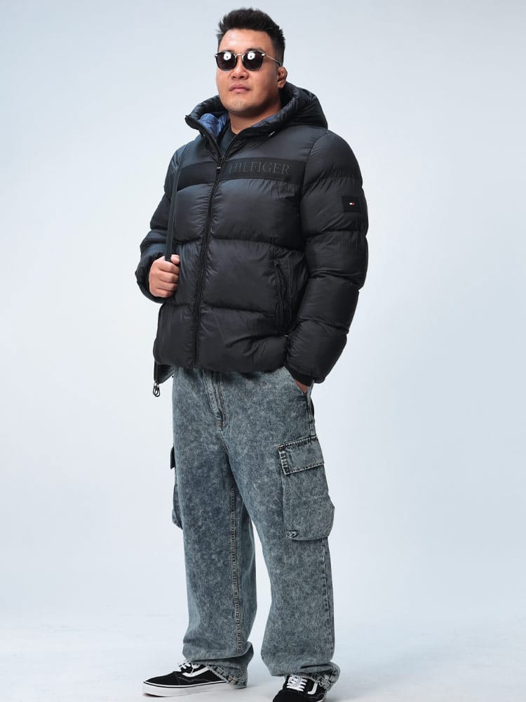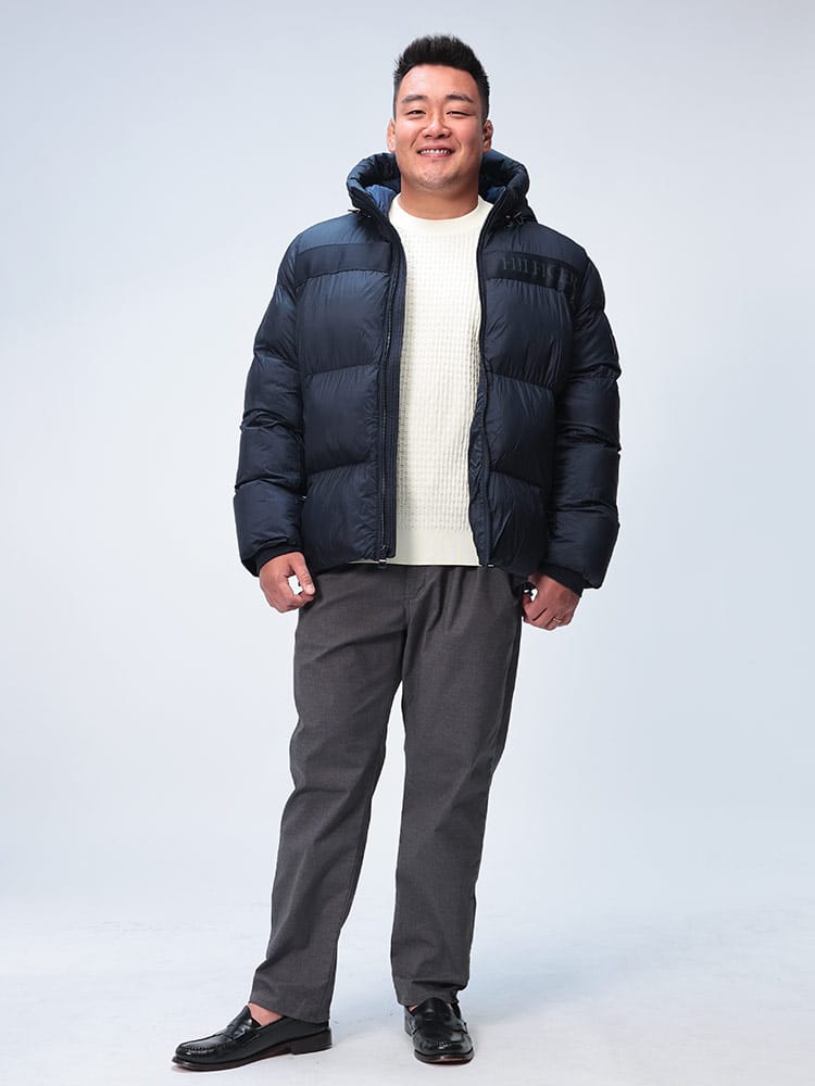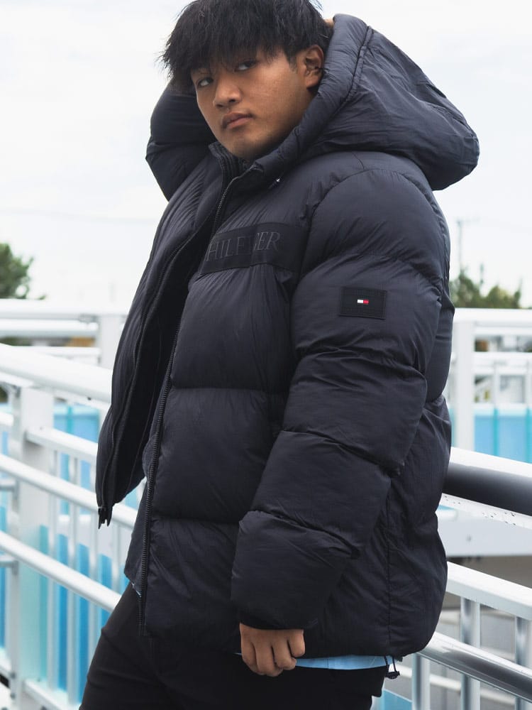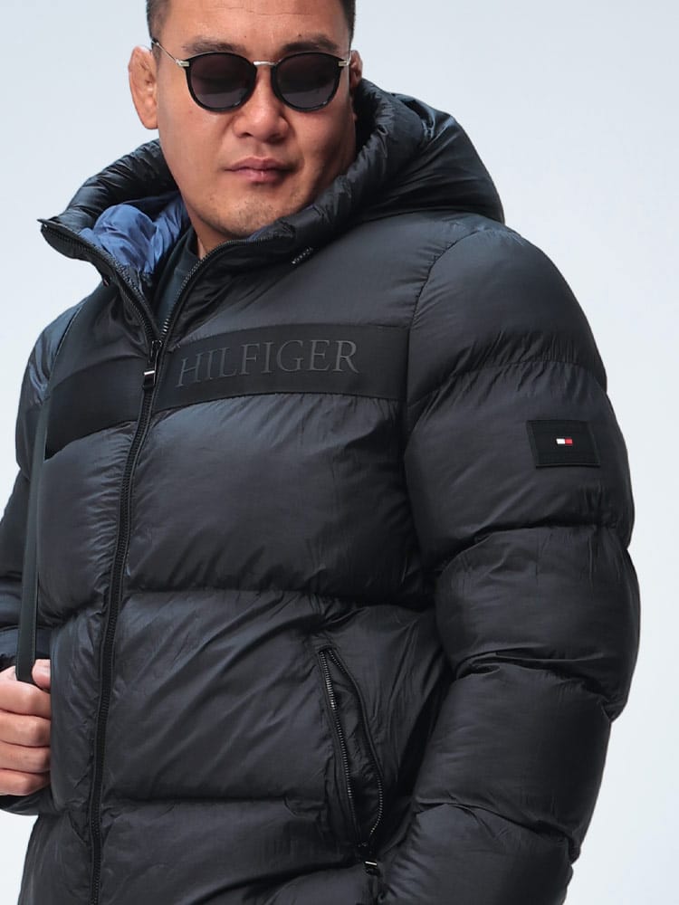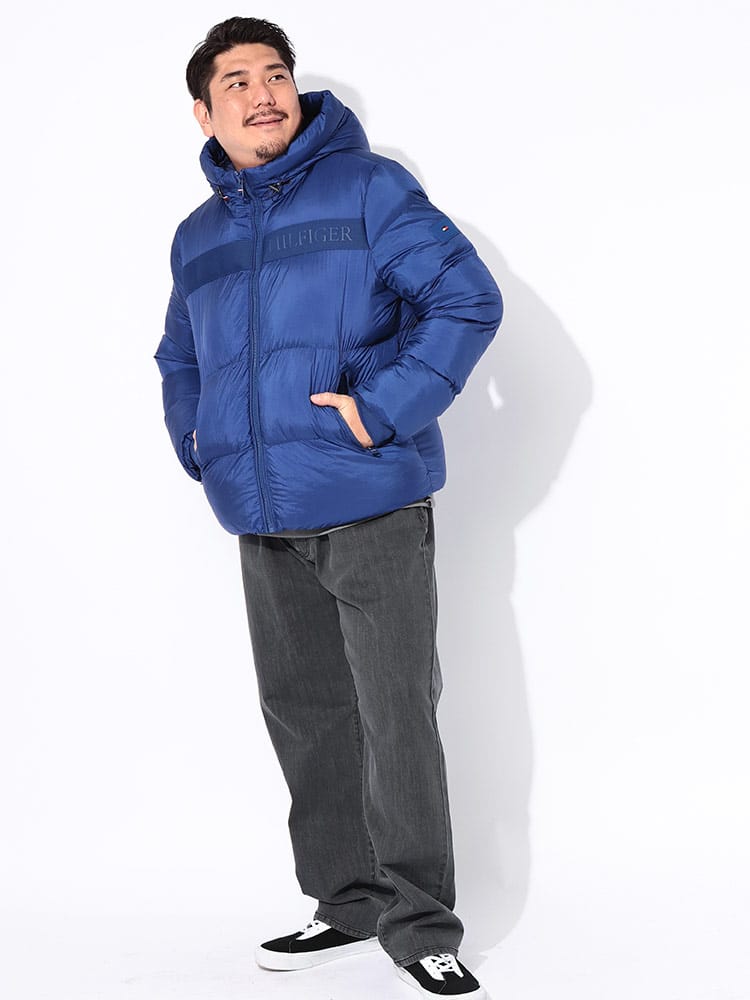 胸元のヒルフィガーロゴテープが目を惹く中綿ジャケットです。