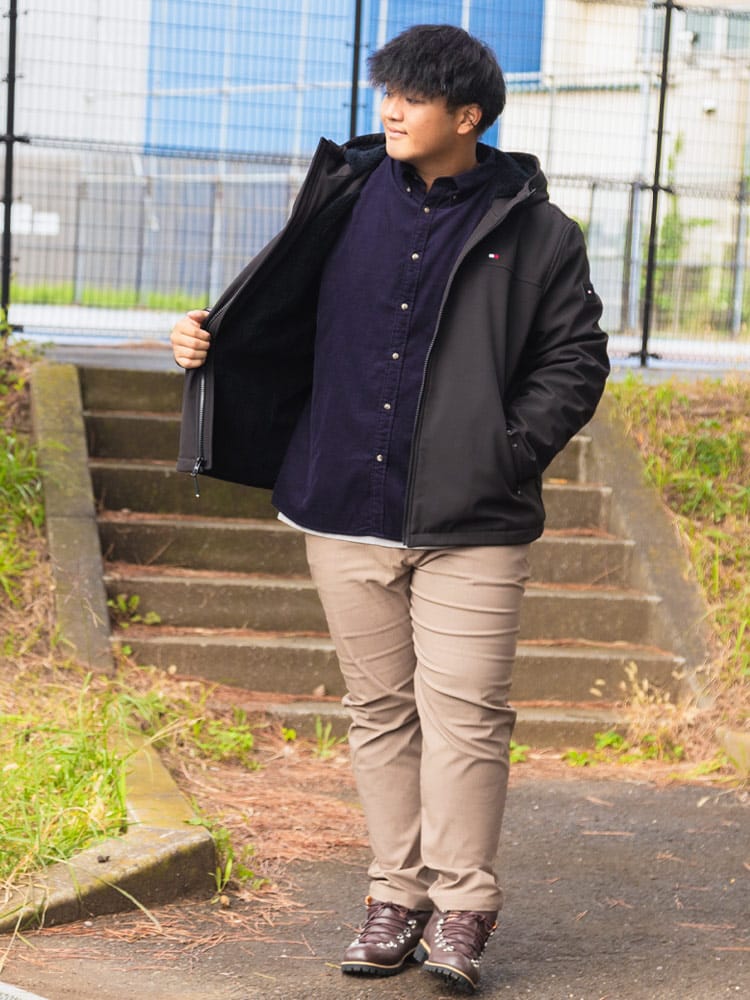 柔らかなボアの裏地が特徴で、一枚で保温性抜群で心地よい一着。