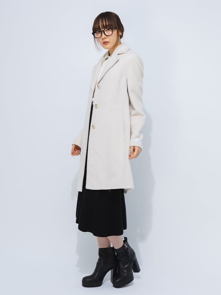 洗練されたデザインが魅力のウール混シングルコートです。上質なウール混素材を使用し、保温性も抜群。すっきりとしたシルエットで、様々なスタイルに合わせやすいのが特徴です。ビジネスシーンからカジュアルな場面まで幅広く活躍する一品です。