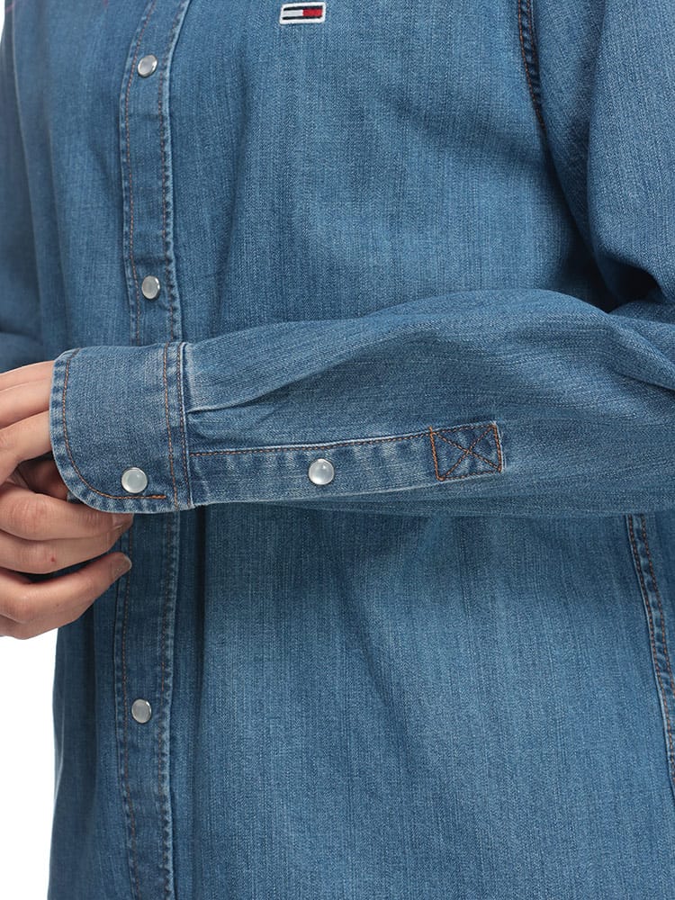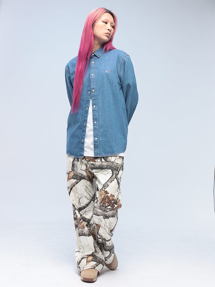フラッグ刺繍 レギュラーフィットウォッシュドデニム オーバーシャツは、ヴィンテージ感漂うスタイリッシュな一着です。ウォッシュ加工を施したデニム素材が、こなれた雰囲気を演出し、胸元のフラッグ刺繍がさりげないアクセントに。