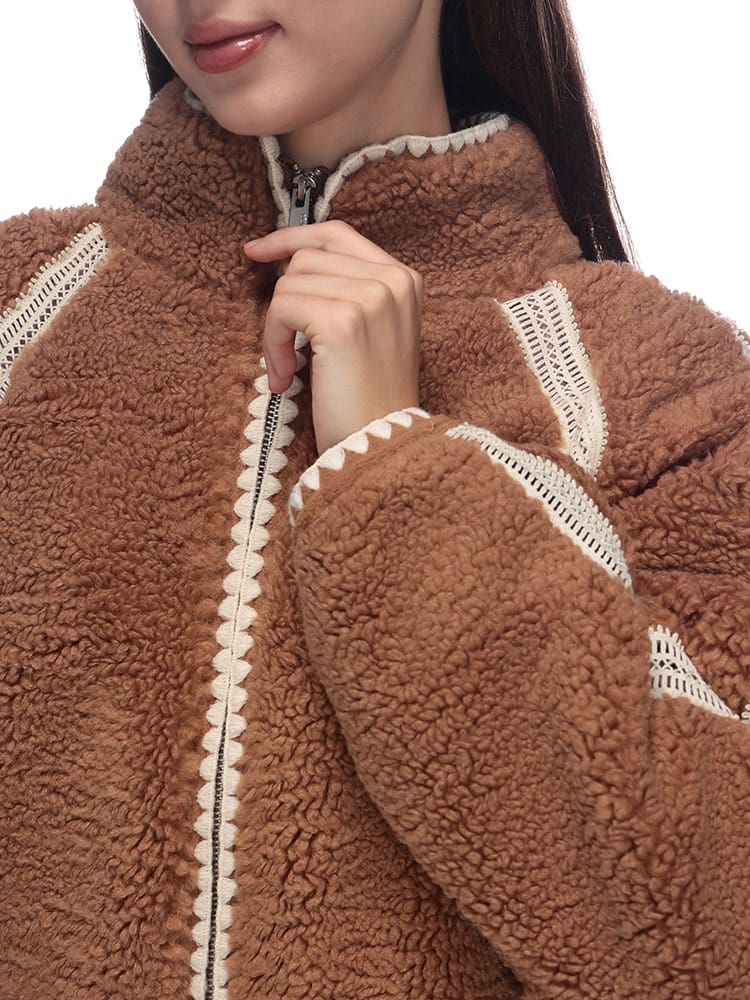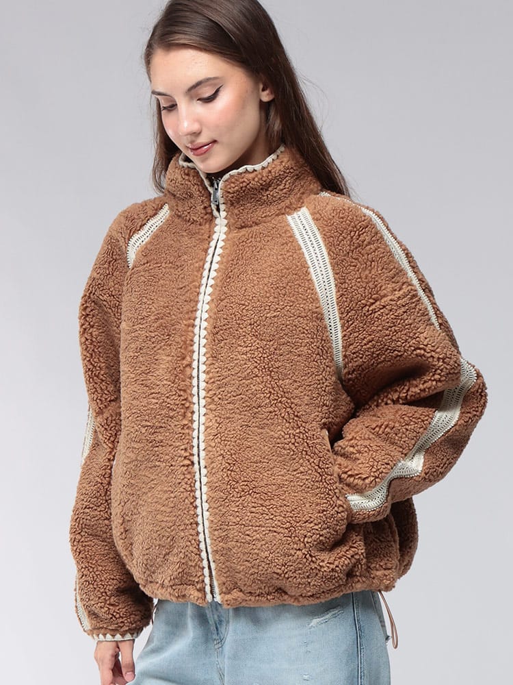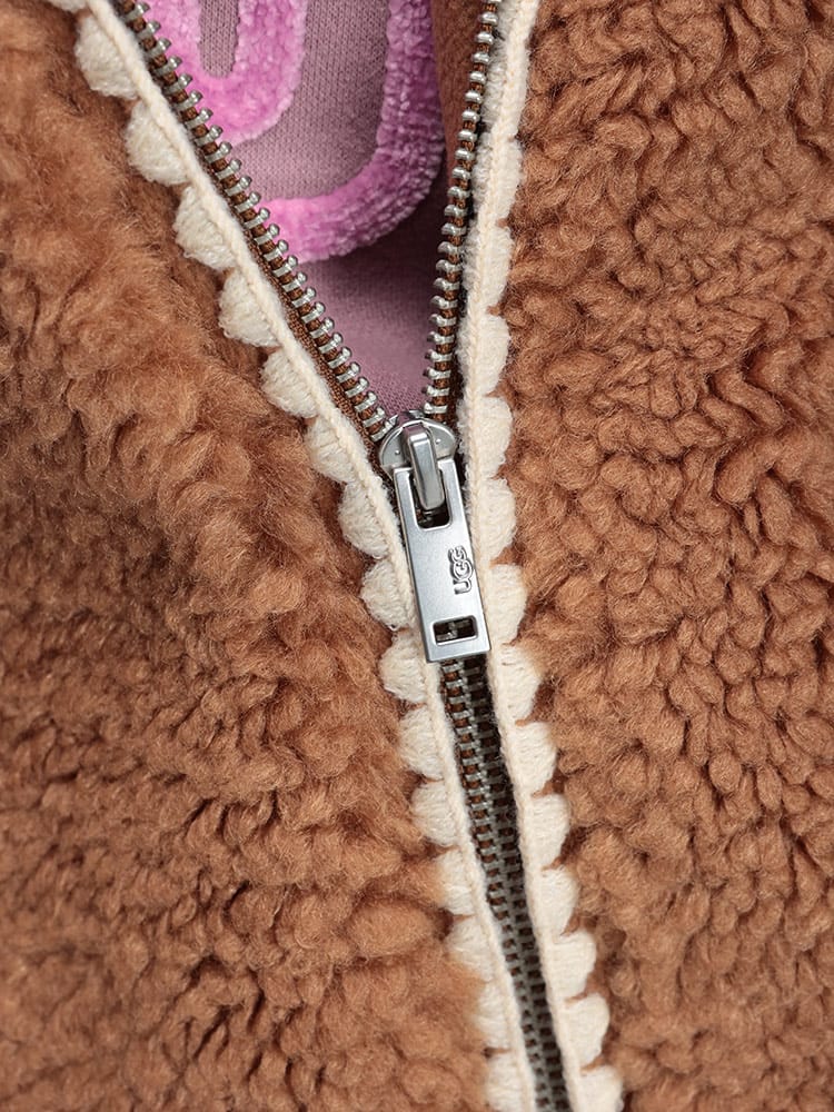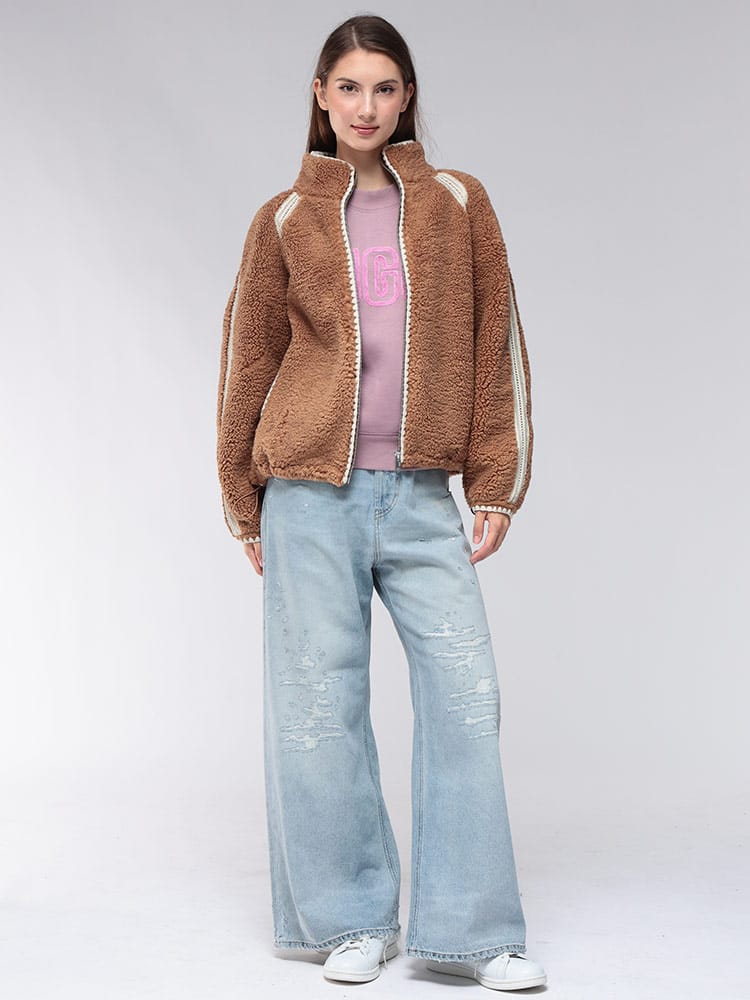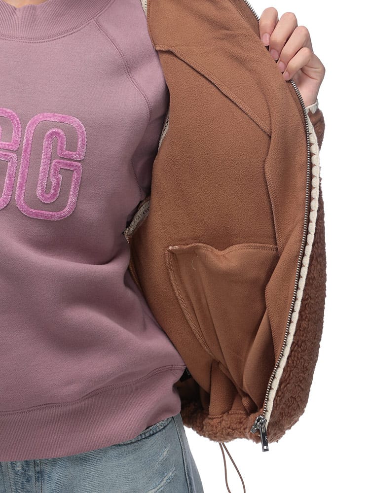 UGGのNIKIAボアジャケットは、ふんわりとしたボア素材が特徴で、見た目にも暖かく、肌寒い季節にぴったりです。ゆったりとしたシルエットで、中に着るものを選ばずレイヤードスタイルも楽しめます。カジュアルながらも上品なデザインは、どんなコーディネートにも合わせやすく、デイリーユースに活躍すること間違いなし。快適さとスタイルを両立した、この冬のマストアイテムです。