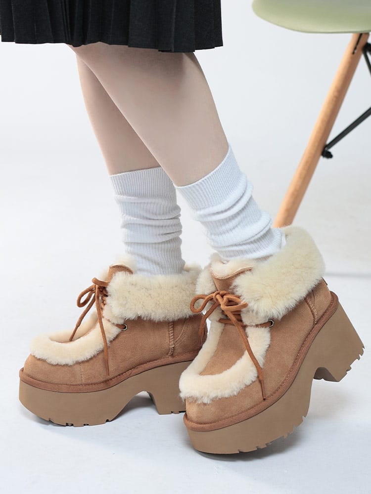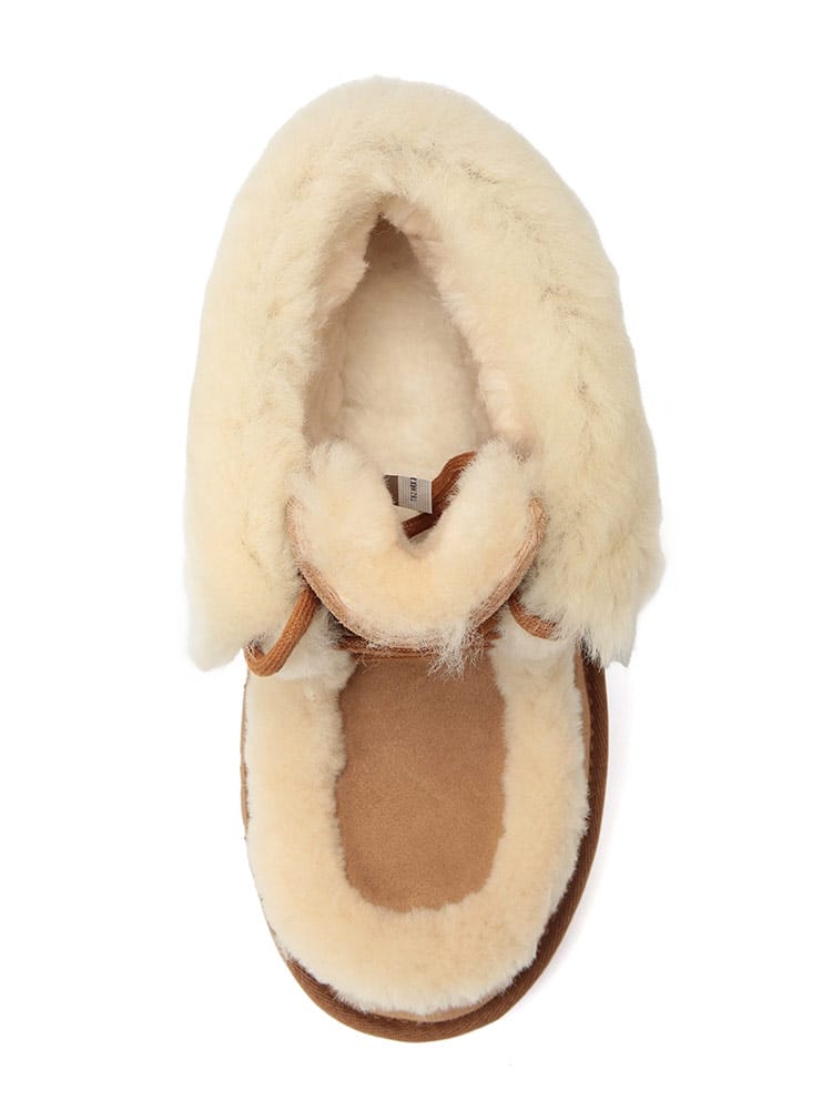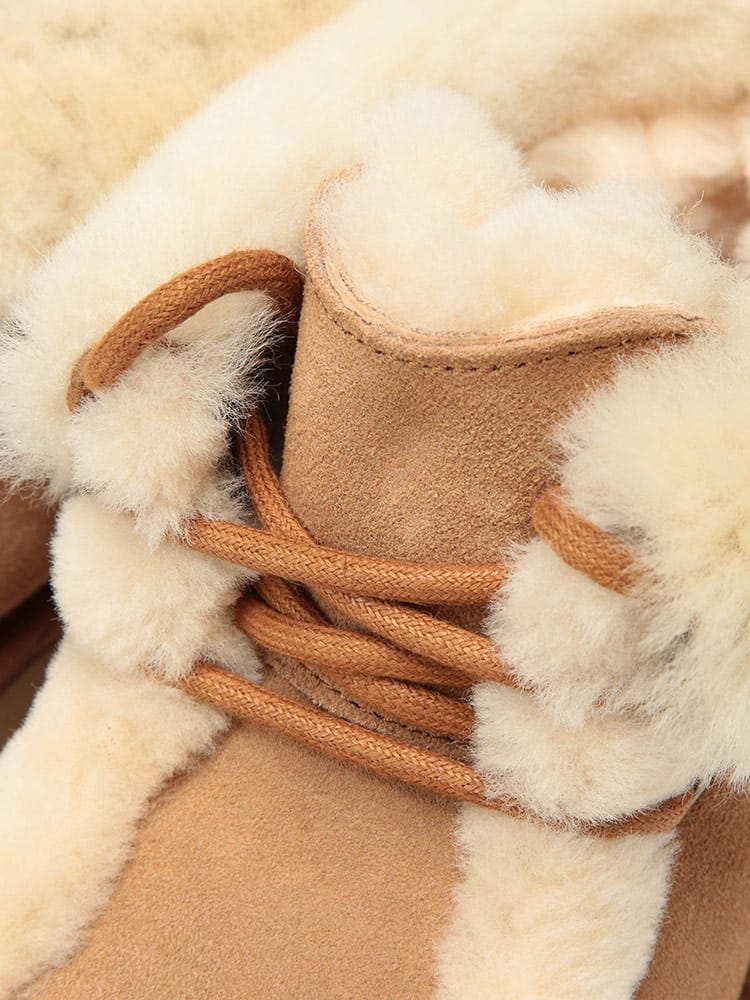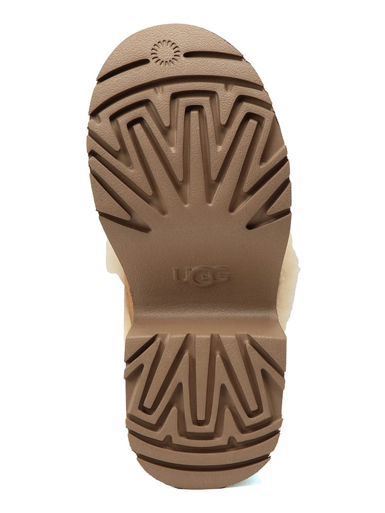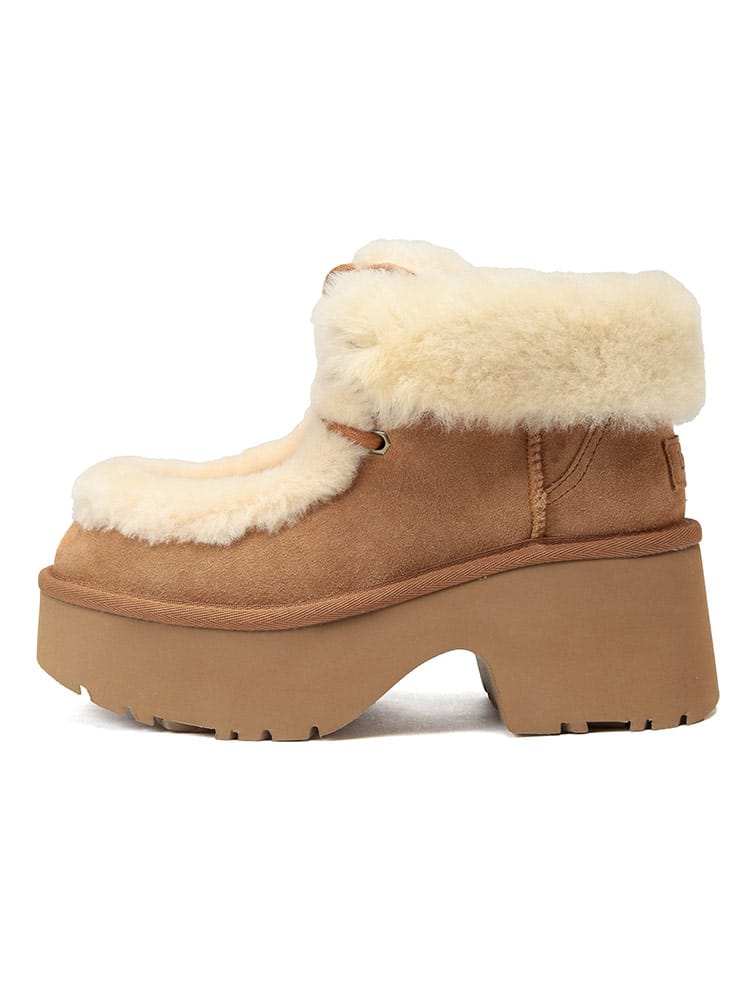 秋冬の定番アイテム、スエード ボア レースアップ ショートブーツ Esmeeです。柔らかなスエードアッパーと、温かくて心地よいUGGplushウールブレンドのライニングが足を優しく包み込みます。クラシックなデザインにレースアップがアクセントとなり、カジュアルからきれいめまで幅広いコーディネートにマッチ。軽量でクッション性の高いソールは、寒い季節でも快適な履き心地を提供します。