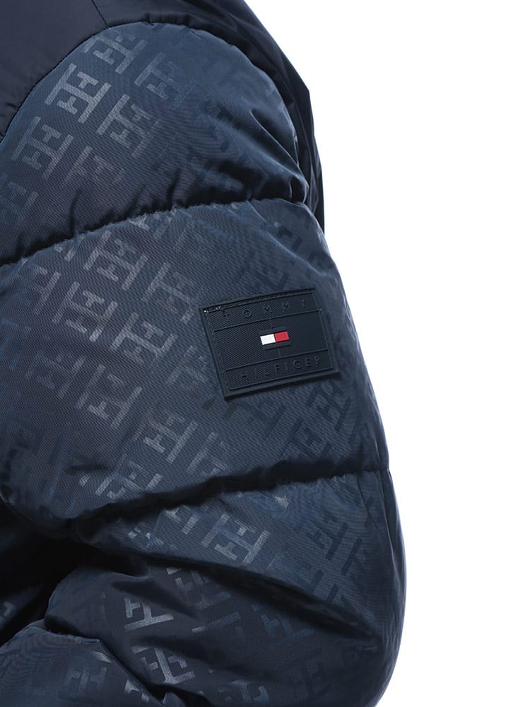 TOMMY HILFIGERの切り替えフルジップ中綿ジャケットは、異素材ミックスのデザインが魅力。スポーティでモダンな印象を与えつつ、中綿入りで優れた保温性を発揮します。冬のタウンユースに最適な、ファッション性と機能性を兼ね備えたパファージャケットです。