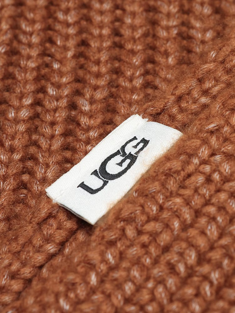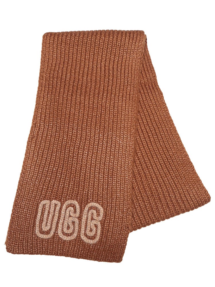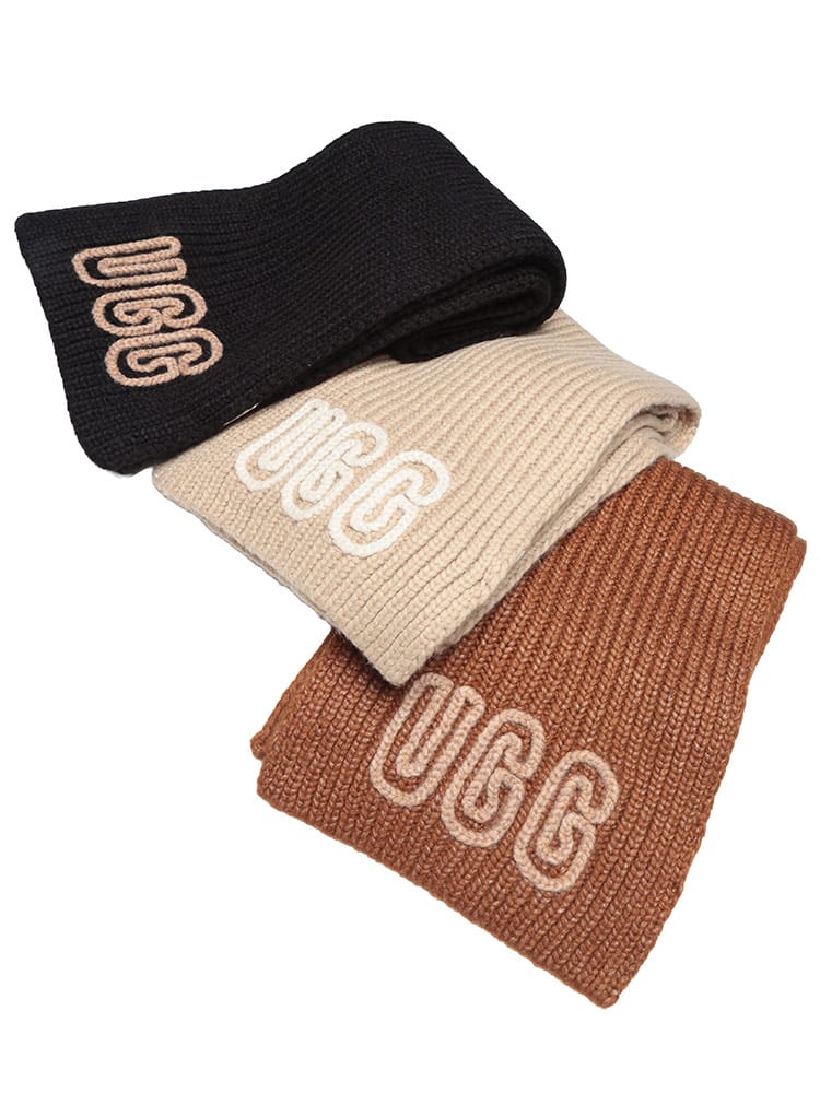 リラックス感と上質な素材使いで人気のUGG(アグ)より、温もりあふれる「チャンキー クラフテッド リブ マフラー スカーフ」のご紹介です。表情豊かなチャンキー(極太)なリブ編みが特徴で、ざっくりとした編み地が秋冬らしい素朴な暖かさと、スタイリッシュなボリューム感を演出します。モダクリル、ナイロン、ウールをブレンドした素材は、肌触りがソフトで暖かく、首元を優しく包み込みます。デザインのアクセントは、端に施されたクロシェットヤーン(かぎ針編み)のグラフィックUGGフォントロゴ。手編みのような温かみのあるこのディテールが、マフラーにクラフト感と唯一無二の個性を加えています。巻くだけで顔周りに立体感が生まれ、いつものアウターを格上げ。寒い季節の防寒とファッション性を両立させる、大人のためのモダンなニットアクセサリーです。