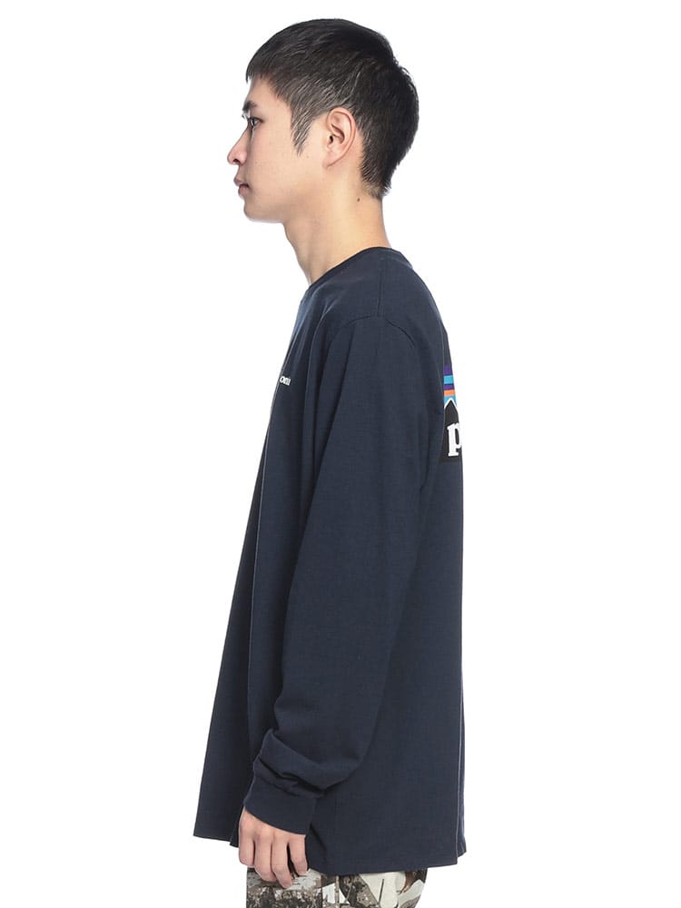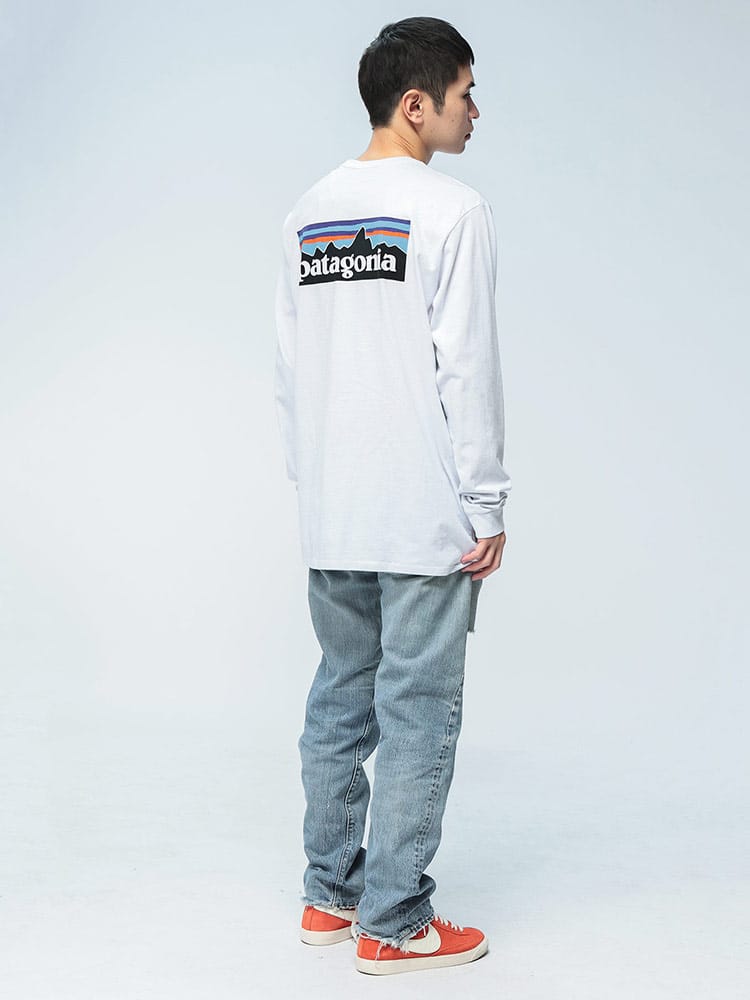 地球を想う、パタゴニアの精神を纏う。アイコニックな長袖Tシャツ。Patagoniaの代名詞ともいえるP-6ロゴを背面に大胆に配した、ブランドフィロソフィーを体現する長袖Tシャツ。フロントはシンプルにまとめ、バックスタイルで確かな存在感を主張します。素材は環境への配慮を形にした、リサイクルコットン50%とリサイクルポリエステル50%の混紡。ソフトで快適な肌触りでありながら、環境負荷の低減にも貢献するサステナブルな一着です。ベーシックなクルーネックと袖通しの良い長袖(ロンT)仕様は、一枚での着用はもちろん、レイヤードスタイルにも最適。メンズ・男性のカジュアルなトップスとして、アウトドアからデイリーまで幅広く活躍します。