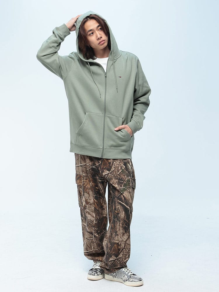 世界中の若者から絶大な支持を得る「TOMMY JEANS(トミージーンズ)」から、秋冬のストリートスタイルを象徴するフルジップパーカーが登場。素材には柔らかな綿をベースにポリエステルを混紡した、ボリューム感のある裏起毛スウェットを採用し、優れた保温性と極上の肌触りを実現しました。胸元に配されたアイコニックなブランドフラッグのワンポイントロゴが、シンプルながらも確かなステータスを演出。着脱が容易なシングルジップ仕様と、利便性の高いフロントポケットが実用性を高めています。計算された程よいフィット感は、一枚での着用はもちろん、アウターのインナーとしても映える高い汎用性が魅力。トレンドに左右されず長く愛用できる、アーバンカジュアルのマスターピースと呼ぶに相応しい一着です。