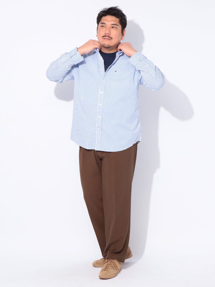 機能美とトラッドが融合したストレッチストライプシャツが登場。ナイロンをベースにした混紡素材を採用することで、驚くほど軽やかな着心地と自由な動きをサポートする高い伸縮性を実現しました。シワになりにくく、アクティブなシーンでもスマートなシルエットを維持。洗練されたストライプ柄とボタンダウンの襟元が、大人の清潔感あるカジュアルスタイルを格上げします。左胸には実用的なポケットを完備。メンズ大きいサイズも展開し、体型を問わずスタイリッシュに決まる一着です。トミーヒルフィガー シャツ メンズ 大きいサイズ ストレッチ ストライプ ボタンダウン 長袖 トップス カジュアル 総柄 伸縮性 ナイロン 秋 冬 MW0MW40515。