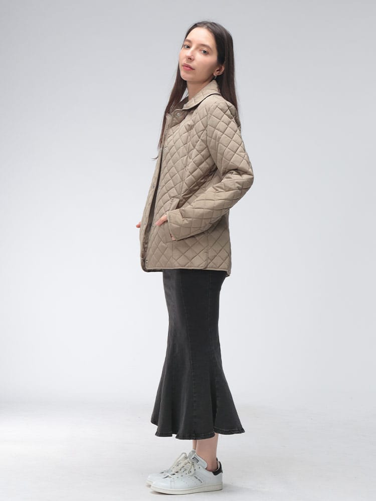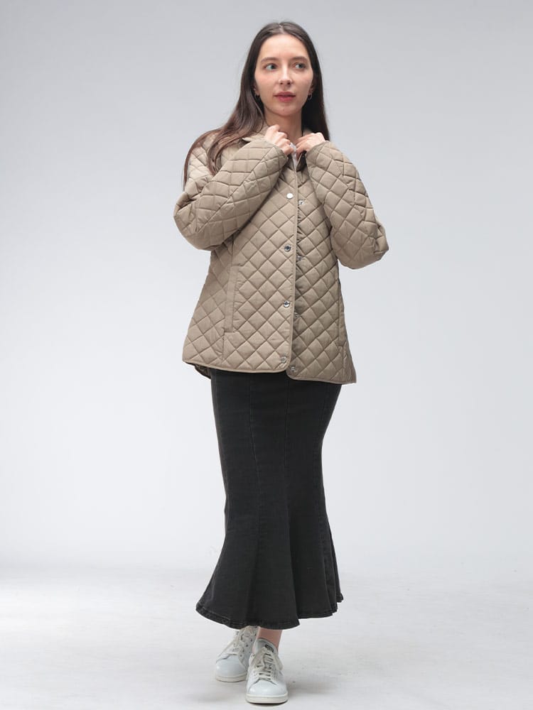 都会的でクリーンなデザインが魅力のレディースジャケットです。軽やかで扱いやすいポリエステル素材を使用したキルティングボディは、中綿入りで保温性が高く、秋口から冬まで長く活躍します。上品な襟付きのデザインとスタイリッシュなフルボタン仕様が、カジュアルなブルゾンに程よいきちんと感をプラス。計算されたシルエットが、着膨れしがちな季節でもスッキリとした女性らしいラインを演出してくれます。