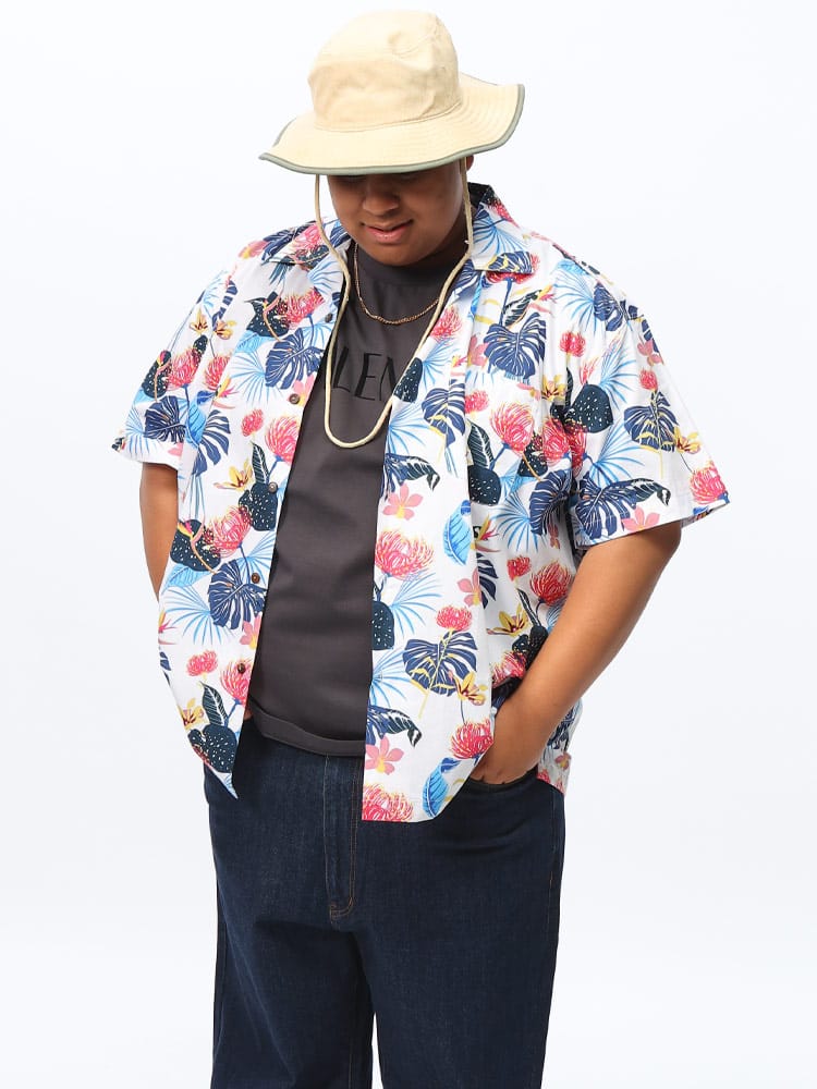 コットン100%のアロハシャツは、オープンカラーでカジュアルな雰囲気を演出します。花柄、ボタニカル柄、ヨット柄、船柄が総柄でデザインされており、リゾート感溢れる一枚です。天然素材のコットンは、肌触りがよく通気性に優れており、快適な着心地を提供します。ウッドボタンがアクセントとなり、ナチュラルな雰囲気をプラス。海辺やバカンス、カジュアルな日常使いにぴったりのスタイリッシュなシャツです。多様な柄が魅力のこのアロハシャツで、夏のコーディネートを楽しんでください。