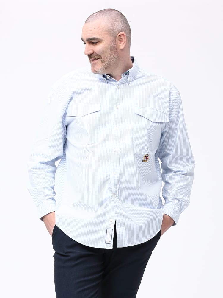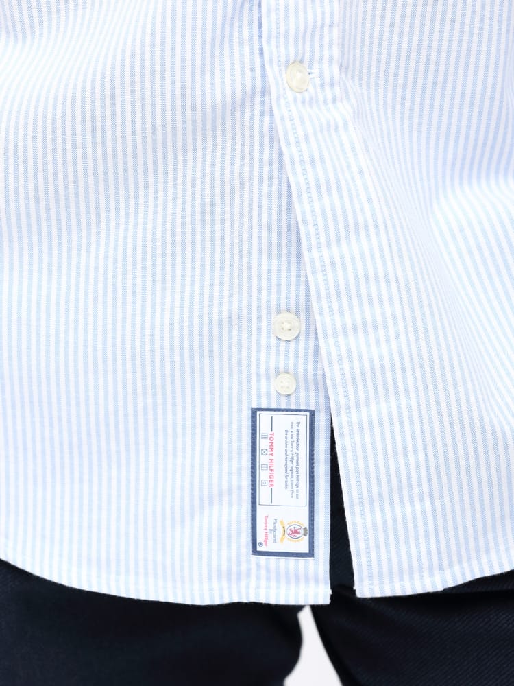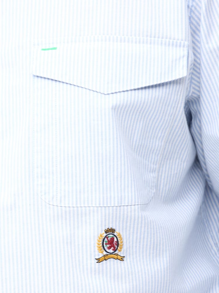35年アニバーサリーモデルの貴重な一枚。クラシックアメリカンクールを掲げ、上品且つプレッピーなアイテムを揃えるTOMMY HILFIGER。ストライプ柄を採用した上品な生地感です。爽やかなカラーを採用したかわいらしさとクールさを兼ね備えたシャツ。アメトラの定番ボタンダウンを採用。フラップ付きのポケット2つ、ポケット下に35年アニバーサリー刺繍を施しています。フロントボタンの最後、袖ボタン部分に隠しステッチを施していいアクセント。