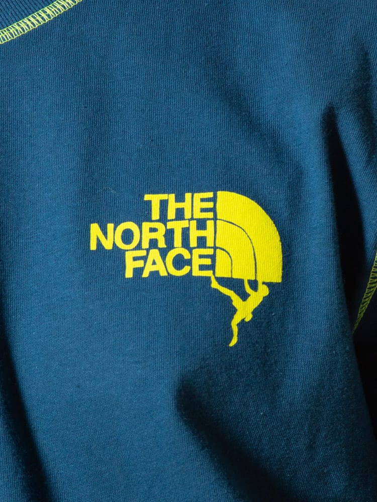 THE NORTH FACEのUSA企画のロゴプリント クルーネック 半袖 Tシャツ DOME CLIMB TEE。お馴染みのドームロゴにクライミングプリントを施したアイキャッチなデザイン。首元はベーシックなクルーネック。肌触りの良いコットン生地を使用しています。