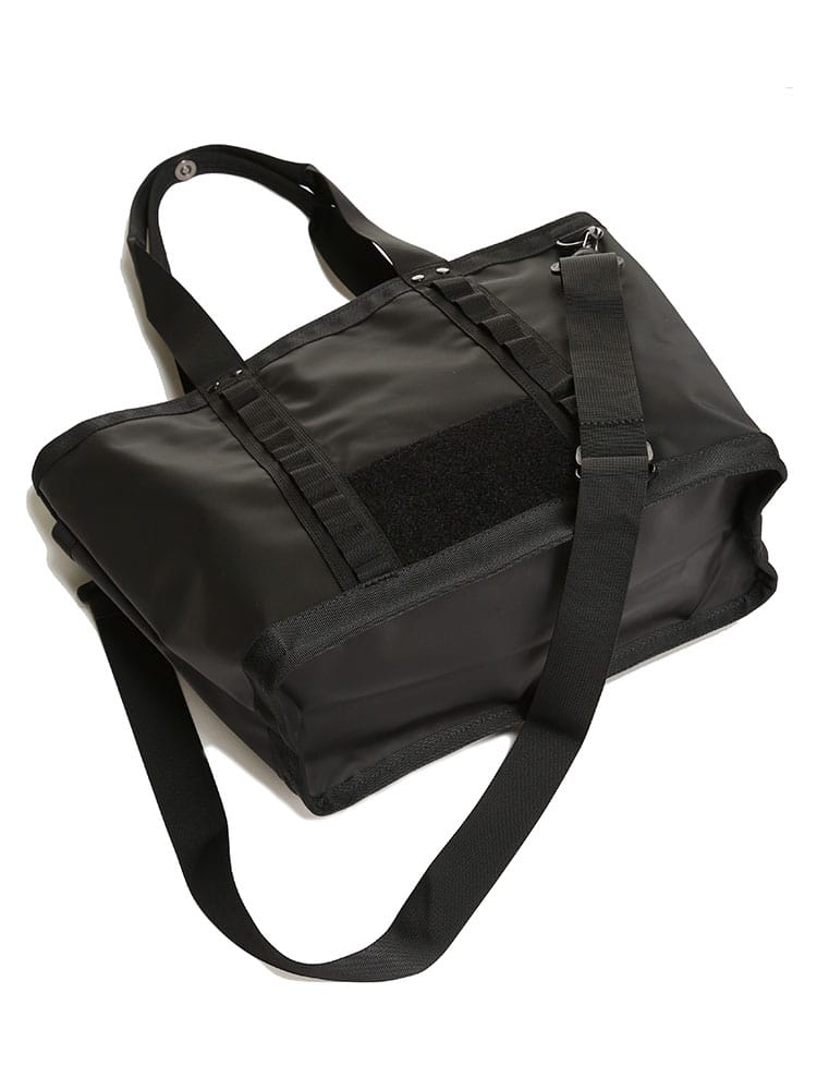 メインと外付けのポケットで小分けして収納しやすいショルダートートバックです。素材は摩擦強度と耐水性に優れるTPEファブリックラミネートポリエステル。調節可能なショルダーストラップとグラブハンドルを装備し、2WAYの使い方が可能。メインコンパートメントは、シンプルな1気室構造で、小物の仕分けに便利なメッシュポケットを配備。デイジーチェーンにより、使い方のアレンジもできるアイテムです。