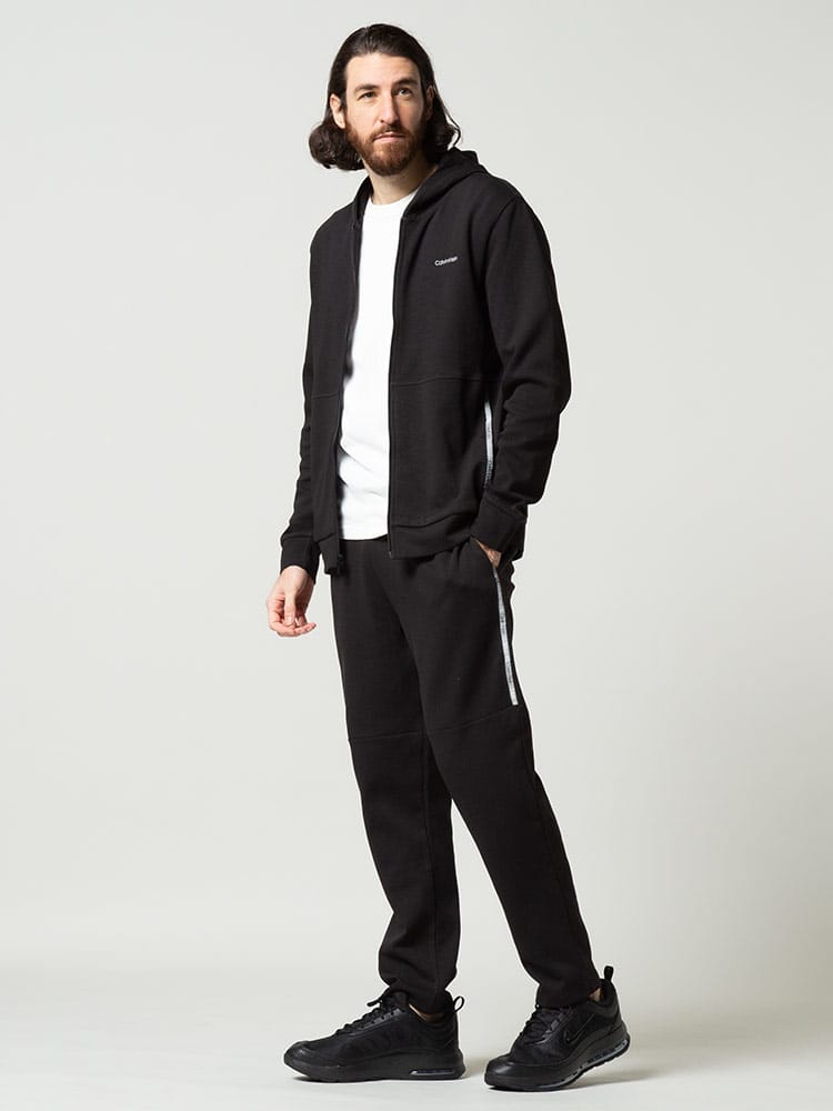 サイドのテープロゴデザインがポイントになったCalvin Kleinのスウェットパンツです。ウエストはゴムとドロコード付きでサイズ調整出来ます。前閉じタイプ。カジュアルスタイルにおすすめのアイテムです。