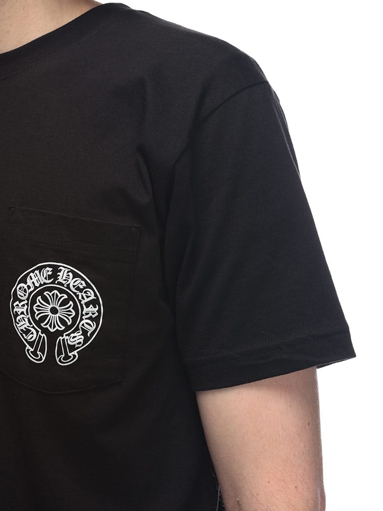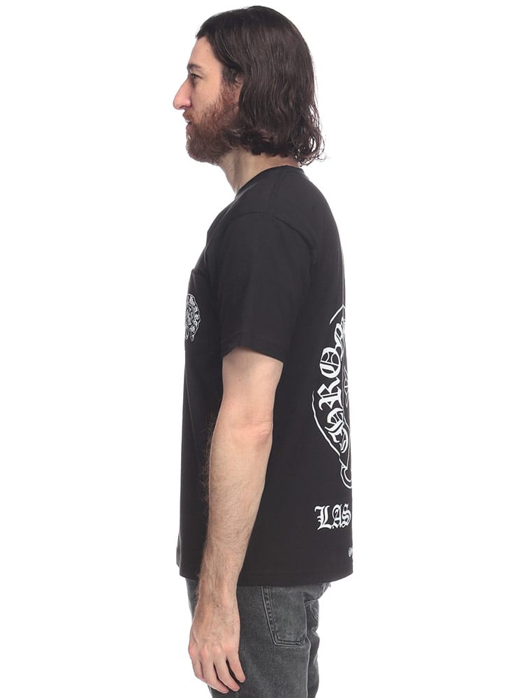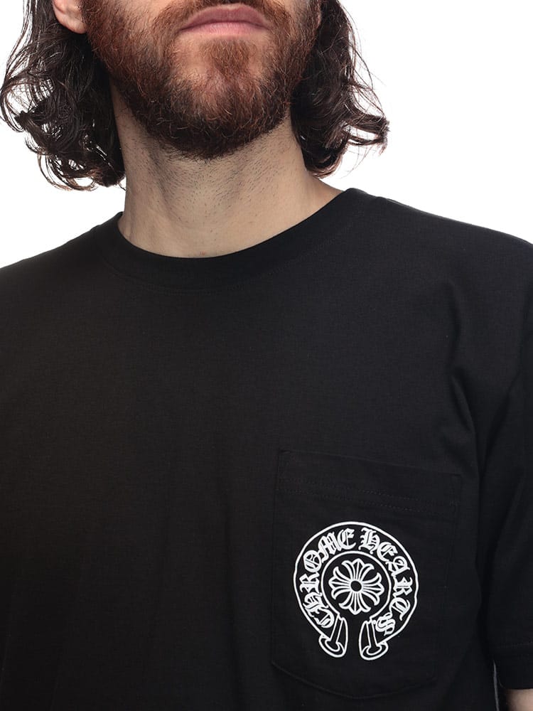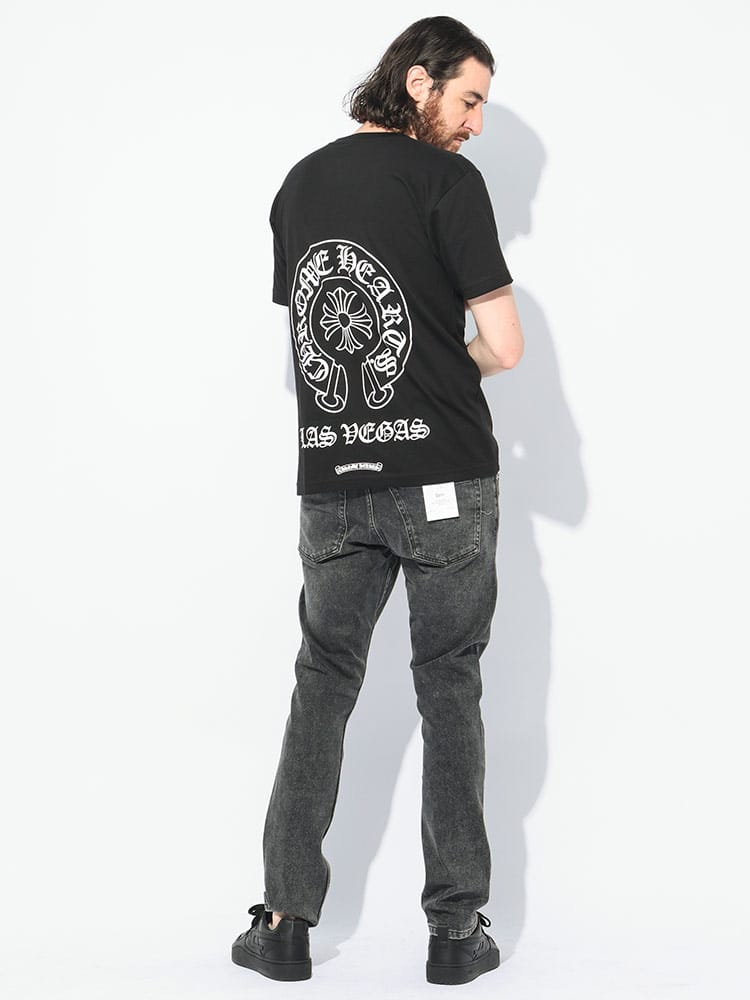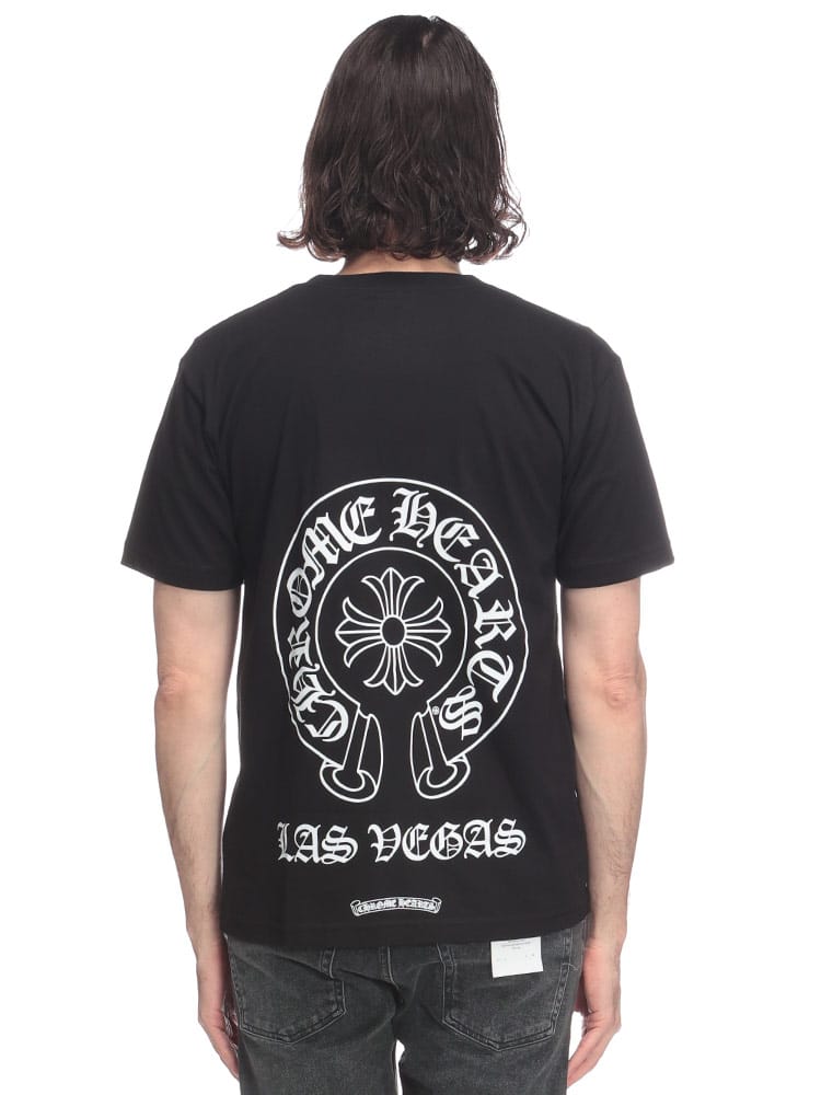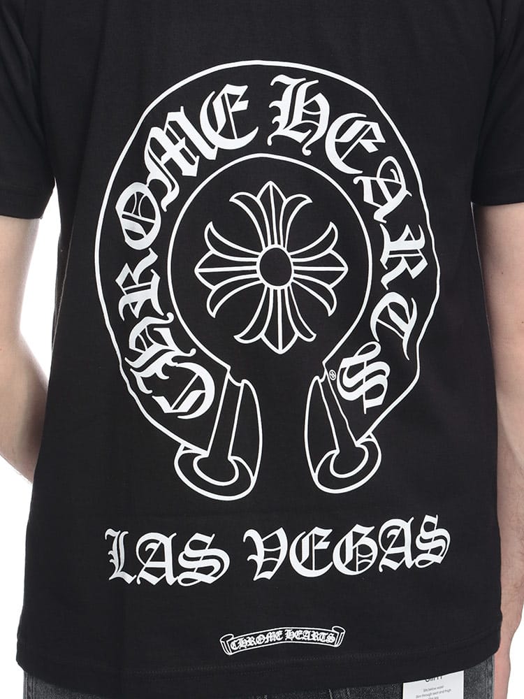 ブランドのアイコニックなホースシューモチーフが特徴的な一枚です。背面に大きくプリントされたホースシューとLAS VEGASの文字が、圧倒的な存在感を放ちます。胸ポケットにもさりげなくブランドロゴが施され、細部にまでこだわりが感じられます。上質なコットン素材を使用し、快適な着心地を実現。Chrome Heartsならではの重厚感のあるデザインは、一枚で着てもインナーとしても、コーディネートの主役になること間違いなし。