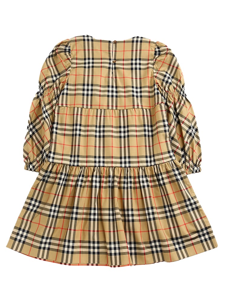 ストレッチの効いたコットンツイルのドレス。パフスリーブとアーカイブに残るヴィンテージチェックをフィーチャーしました。