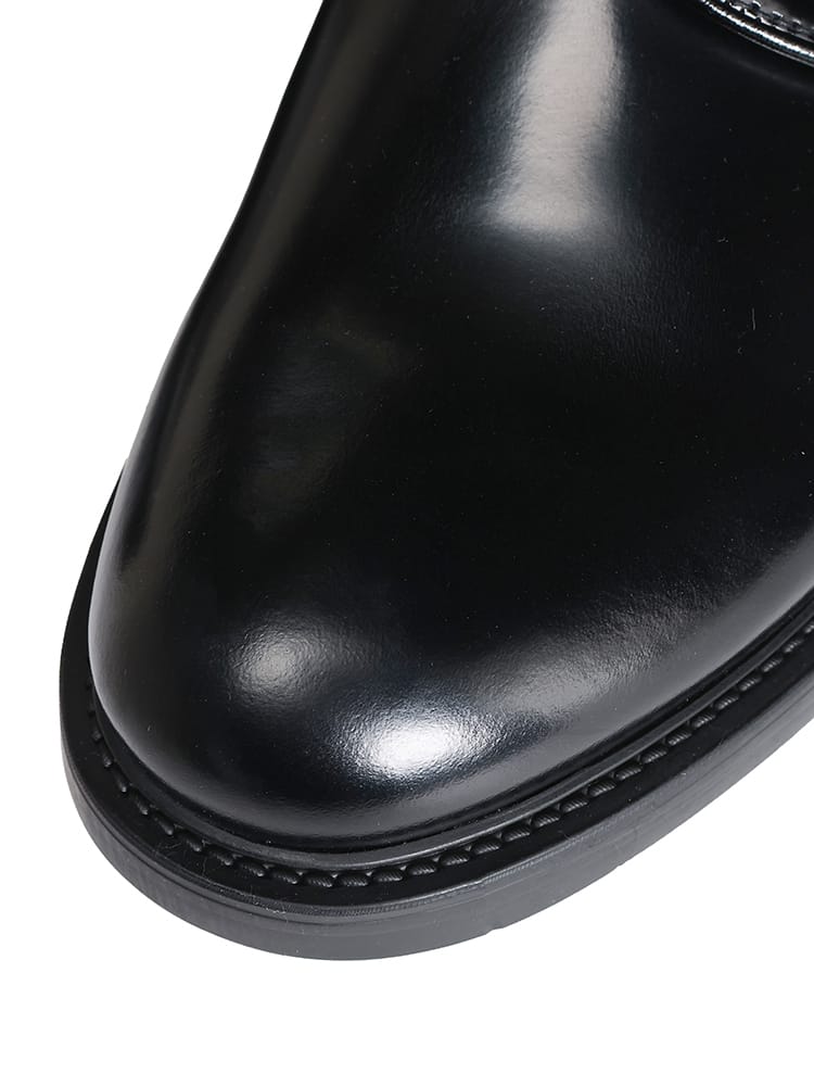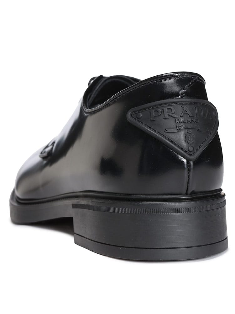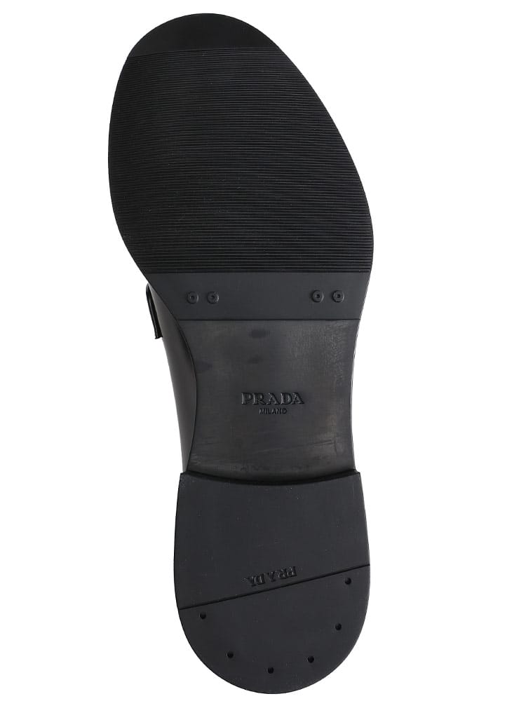 プラダのアイコニックな三角ロゴが際立つ、ブラッシュドレザーのレースアップシューズです。柔らかなレザーの質感と、ラバーロゴの組み合わせがモダンな印象。カジュアルからフォーマルまで幅広いスタイルに合わせやすく、足元に上品さをプラスします。