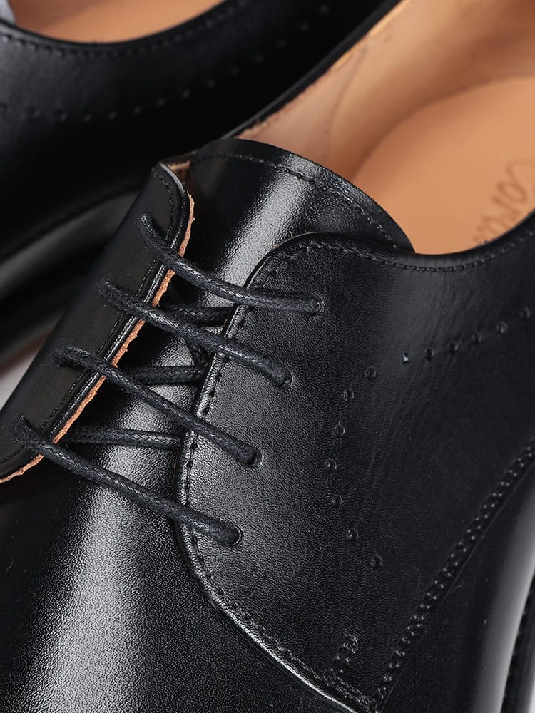 コードウェイナーのプレーントゥは、シンプルながらも洗練されたデザインが魅力の革靴です。外羽根のレースアップスタイルで、足へのフィット感が高く、長時間履いても疲れにくいのが特徴です。上質なレザーを使用しており、履き込むほどに足に馴染みます。ビジネスシーンはもちろん、カジュアルなスタイルにも合わせやすい一足です。