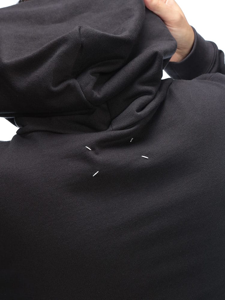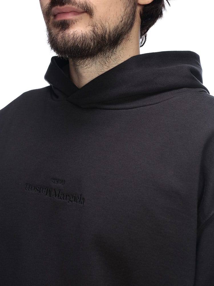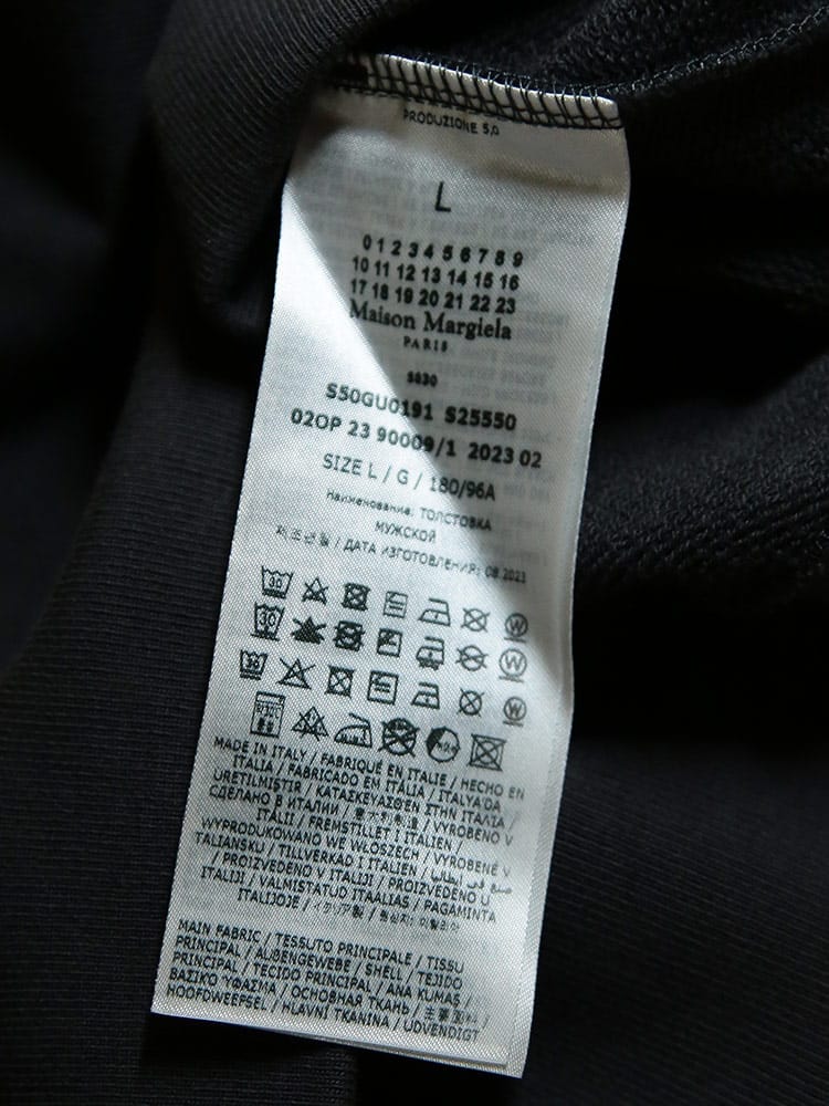 ロントに施された反転ロゴの刺繍が目を引く、遊び心とひねりの効いたデザインが特徴です。上質なスウェット素材によるリラックス感のある着心地と、メゾンらしいアヴァンギャルドな感性が融合。普段のカジュアルスタイルに、モードなエッジを効かせたい方に最適な一枚です。