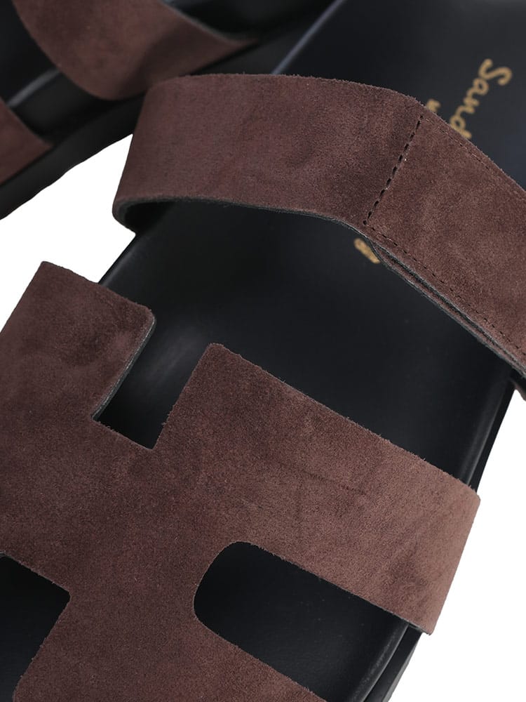上質なスエードレザーを贅沢に使用したHアンクルストラップサンダルが登場。柔らかな質感が足を優しく包み込み、アンクルストラップが抜群のホールド感を実現します。片足約325gという程よい重厚感が歩行に安定感を与え、フラットながらも洗練された都会的なシルエットが魅力。ブランドらしい上品なレザーの風合いは、春夏のジャケパンスタイルやリゾートコーディネートにラグジュアリーな奥行きを添えます。履き込むほどに足に馴染む本格仕様で、大人の休日を格上げする一足。機能美とファッション性を高次元で融合させた、本物志向の男性に相応しい一生モノのサンダルです。