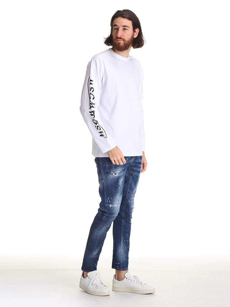 ・アームロゴプリントがポイントになったクルーネック 長袖 Tシャツ