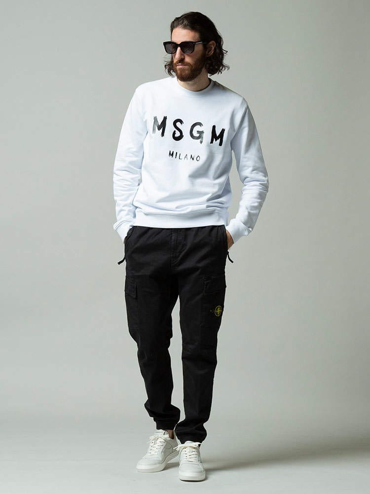 MSGM (エムエスジーエム) ロゴプリント クルーネック トレーナー BRUSHD LOGO MS2000MM513