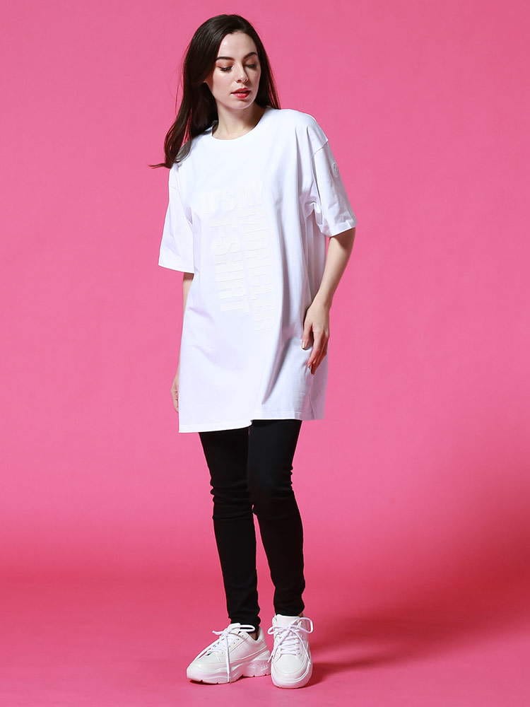 ・同系色のBIGロゴプリントをデザインしたクルーネック 半袖 オーバーサイズ Tシャツ
